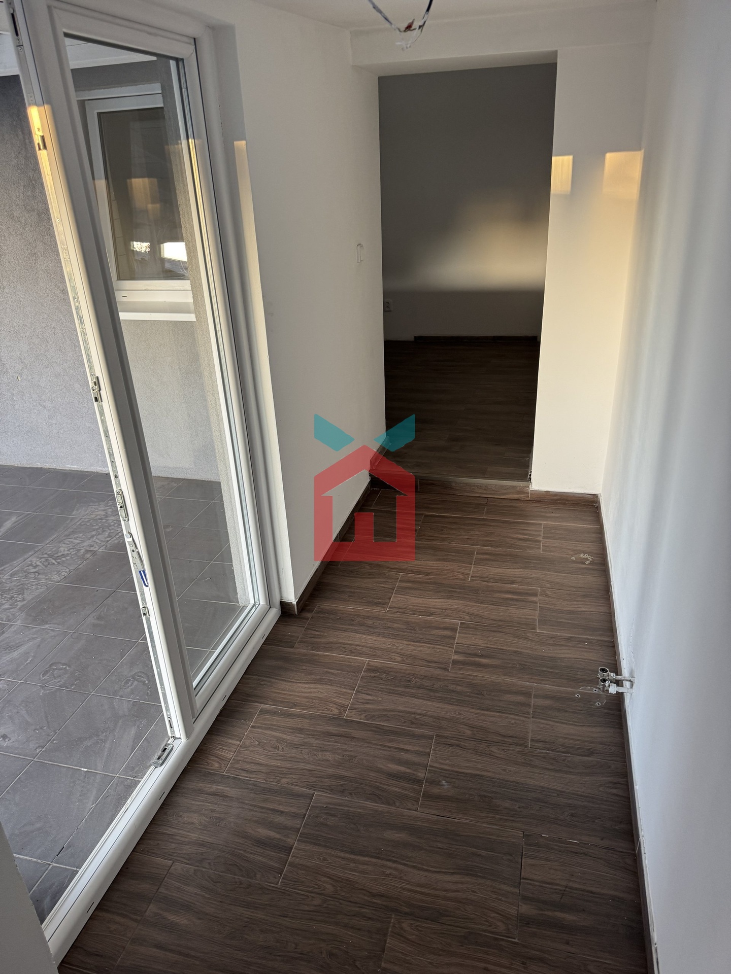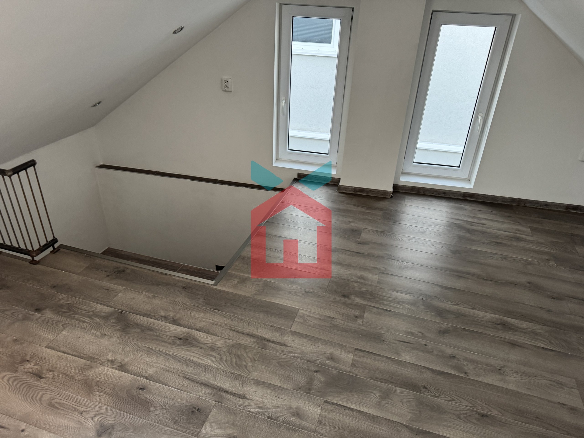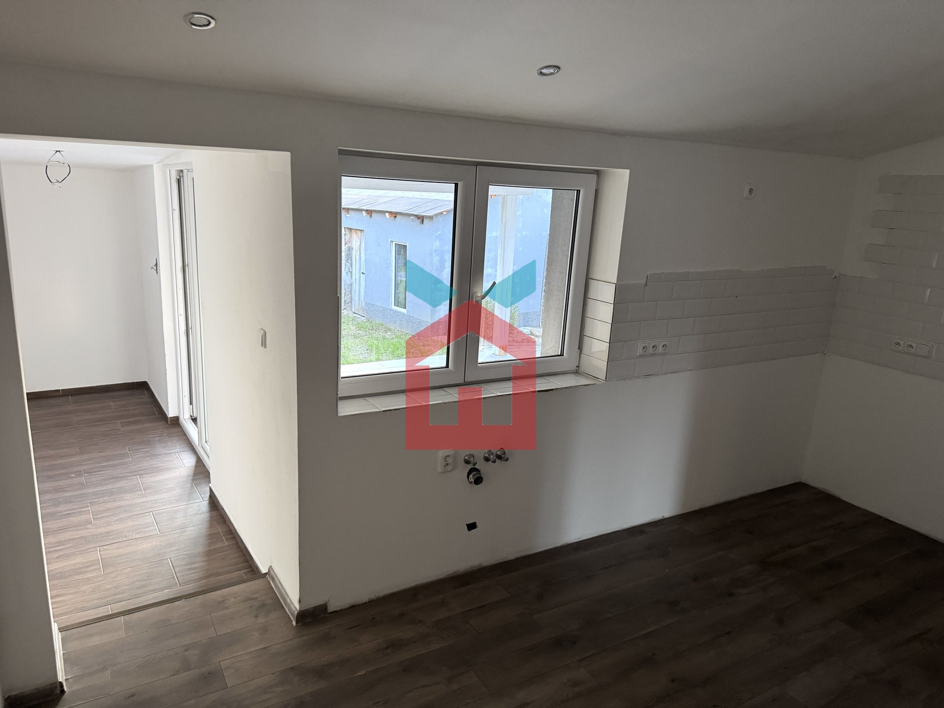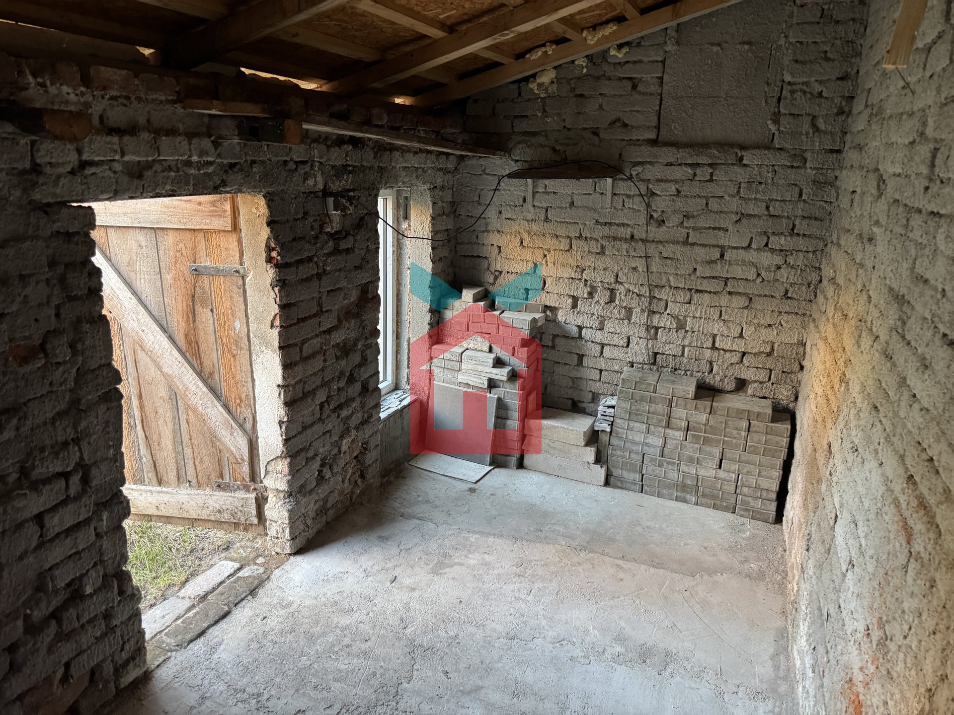 Vstupní chodba na kterou navazuje kuchyně s možností malého obýváku, pokud by někdo potřeboval další dva pokoje v přízemí. Dále je v přízemí koupelna s WC a malý sklep s plynovým kotlem. V mezonetovém patře se nachází obytné podkroví po celé délce domu.