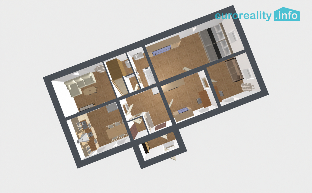• objekt využívaný k bydlení, možnost rozdělení na dvě jednotky (zastavěná plocha cca 136 m², podlahová 270 m² )