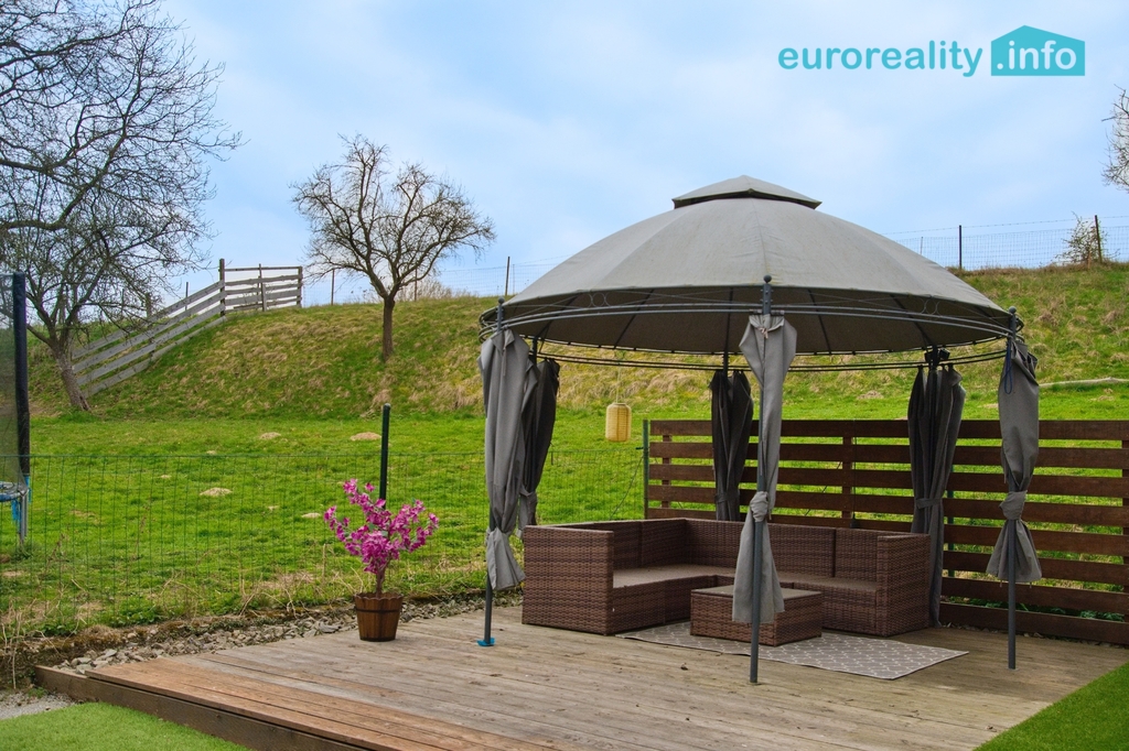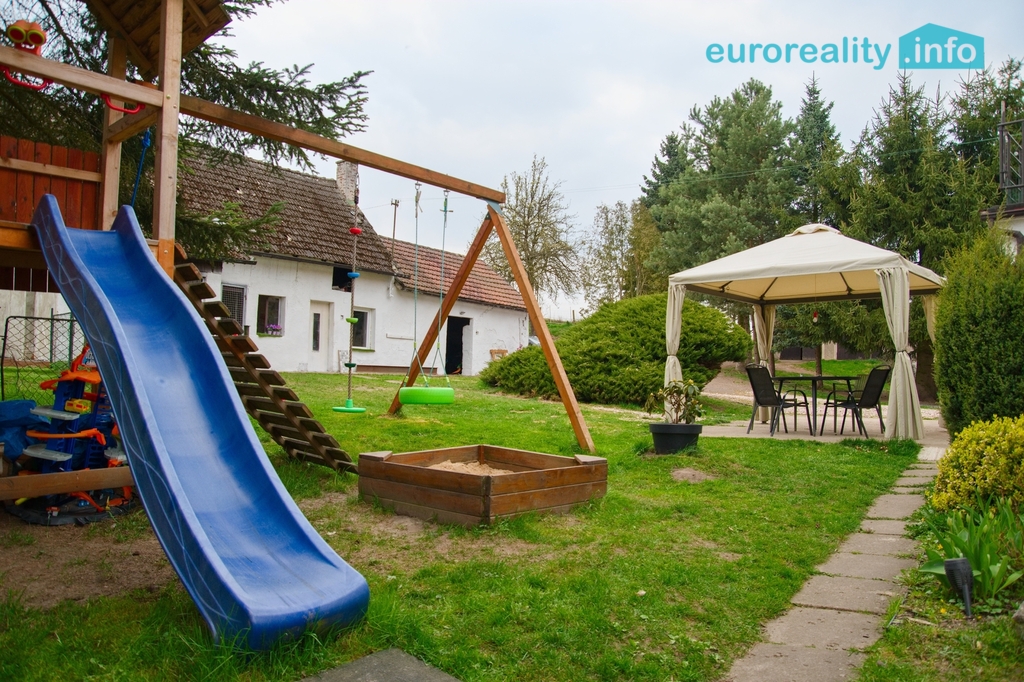 Na pozemku se nachází dětské hřiště, ohniště, terasa s posezením a pergola s posezením.