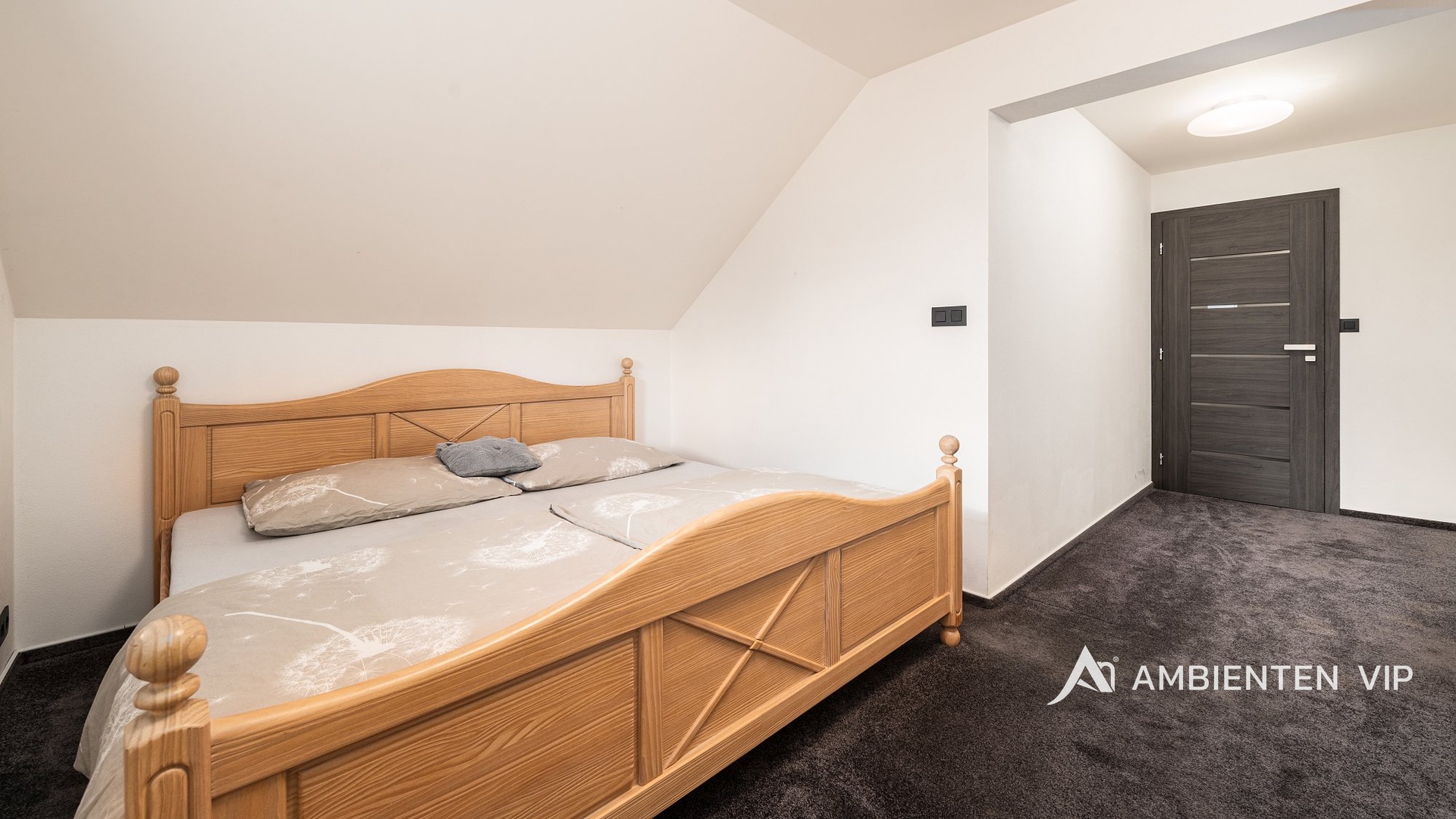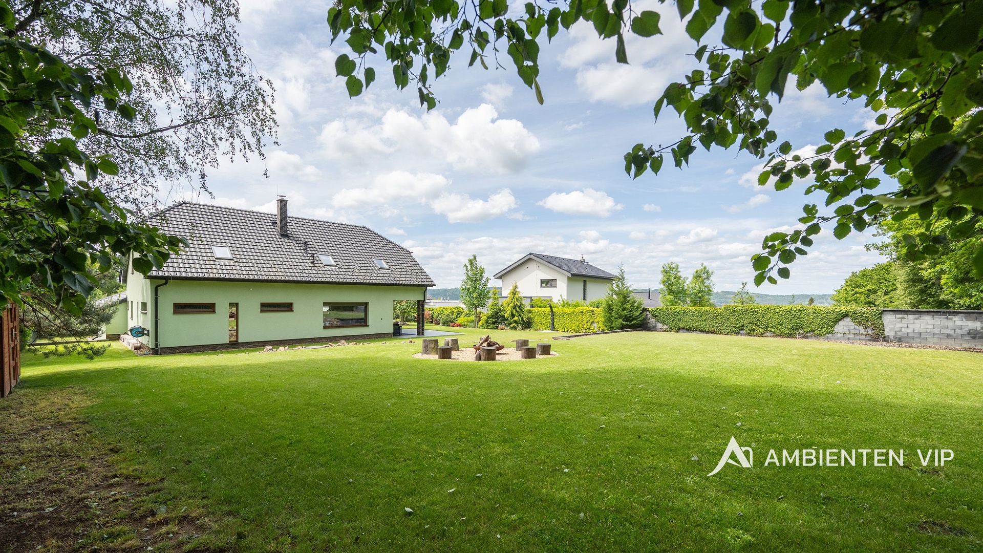 Rodinný dům je určen pro náročného klienta či větší rodinu, která hledá komfortní, prostorné a maximálně klidné bydlení. Vše lze přizpůsobit náročnosti klienta, kdy může jednotlivé místnosti využít pro relax, jako ložnici, dětské pokoje či pro podnikání. Okolí domu, zahrady a vedlejší zahrady s chatou je možné ještě dotvořit dle vkusu, požadavku nebo představ budoucího majitele této krásné nemovitosti.