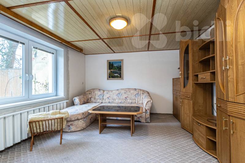 Suterén domu skýtá další obývací pokoj, toaletu a několik místností vhodných jako sklad či dílnu. Je zde i starší kuchyňská linka a sklípek. Garáž, která se nachází mimo dům je vhodná spíše pro menší vozidlo s úzkým vjezdem, případně ji lze využít jako dílnu.