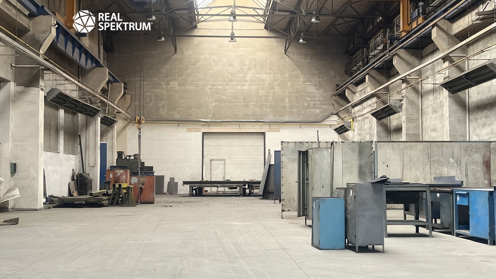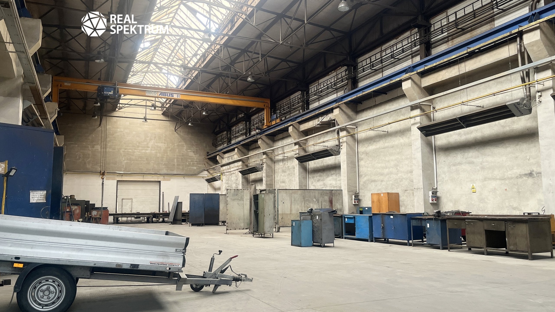 Hala je vybavena dvěma jeřáby o nosnosti 8t.