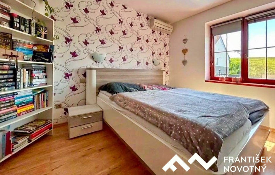 Dispozice: vstupní chodba, pracovna, koupelna s vanou i sprchovým koutem, samostatné WC, obývací pokoj s kuchyní a jídelnou se vstupem na terasu, klimatizovaná ložnice a dětský pokoj.