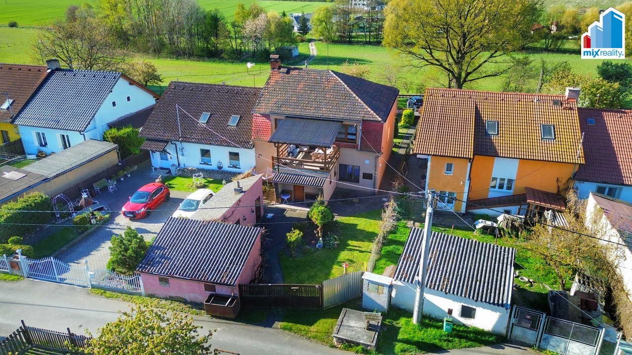 Hledáte klidné bydlení? Naše realitní společnost Vám nabízí exkluzivně k prodeji rodinný dům se dvěma bytovými jednotkami o dispozici 2+1 a 3+1 s komorou, kůlnou a zahradou v klidné obci Blatnice, okres Plzeň-sever. Nemovitost se nachází na vlastním pozemku o celkové výměře 518 m². Zastavěná plocha činí přibližně 133 m² a užitná plocha domu je cca 175 m². Dům je v původním stavu a představuje ideální příležitost pro rekonstrukci dle vlastních představ. V přízemí se nachází bytová jednotka 2+1, která se skládá z předsíně, komory, koupelny s vanou, samostatné toalety, technické místnosti, kuchyně s kuchyňskou linkou, obývacího pokoje a ložnice. Z přízemí je zároveň vstup do patra domu. V patře je situována druhá bytová jednotka o dispozici 3+1. Ta nabízí chodbu, kuchyni s kuchyňskou linkou, obývací pokoj, ložnici se vstupem na terasu a půdu a další pokoj. V této jednotce jsou již instalována plastová okna. Dům je napojen na kanalizaci, voda je aktuálně čerpána ze studny, přičemž přípojka na vodovodní řad se nachází na hranici pozemku. Vytápění je zajištěno plynovým kotlem nebo kotlem na tuhá paliva, ohřev vody obstarává elektrický bojler. Nemovitost bude v případě zájmu kompletně vyklizena. Obec Blatnice se nachází pouhé 3 km od města Nýřany, kde naleznete veškerou občanskou vybavenost (školy, školky, obchody, pošta, zdravotní středisko a další služby). Krajské město Plzeň je vzdáleno přibližně 20 km, výhodou je také rychlé napojení na dálnici D5. Tato nemovitost nabízí klidné bydlení v blízkosti přírody a zároveň skvělou dostupnost do města. Ideální volba pro vícegenerační bydlení či investici. V případě zájmu Vám rádi zajistíme výhodné financování na míru. Pro více informací nebo sjednání prohlídky nás neváhejte kontaktovat.