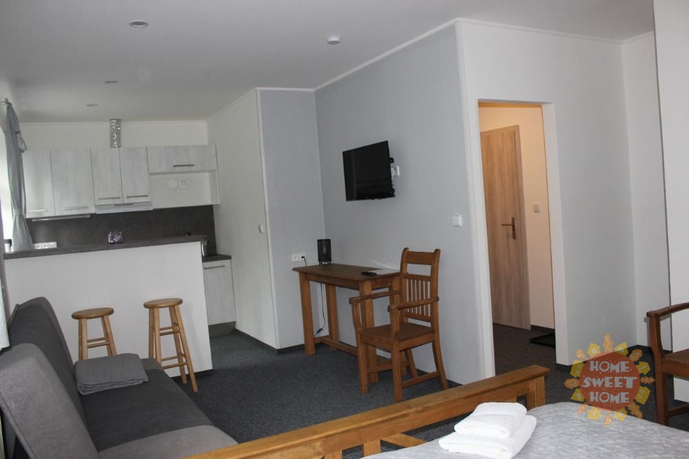 Všechny apartmány byli nově zrekonstruovány a jsou vybaveny, koupelnou se sprchovým koutem a toaletou, plně vybavenou kuchyní ( lednice, sklokeramická dvou plotýnka, mikrovlná trouba, digestoř, rychlovarná konvice, sada nádobí a příborů). V každém apartmánu je jídelní stůl s patřičným počtem židlí, dle velikosti apartmánu. Na podlaze jsou položeny kvalitní zátěžové koberce a v koupelně je dlažba. Každý apartmán je vybaven manželskou postelí, skříní, věšákem, TV a wifi. K dispozici společná pračka a sušička. Nábytek lze upravit dle přání nájemce.