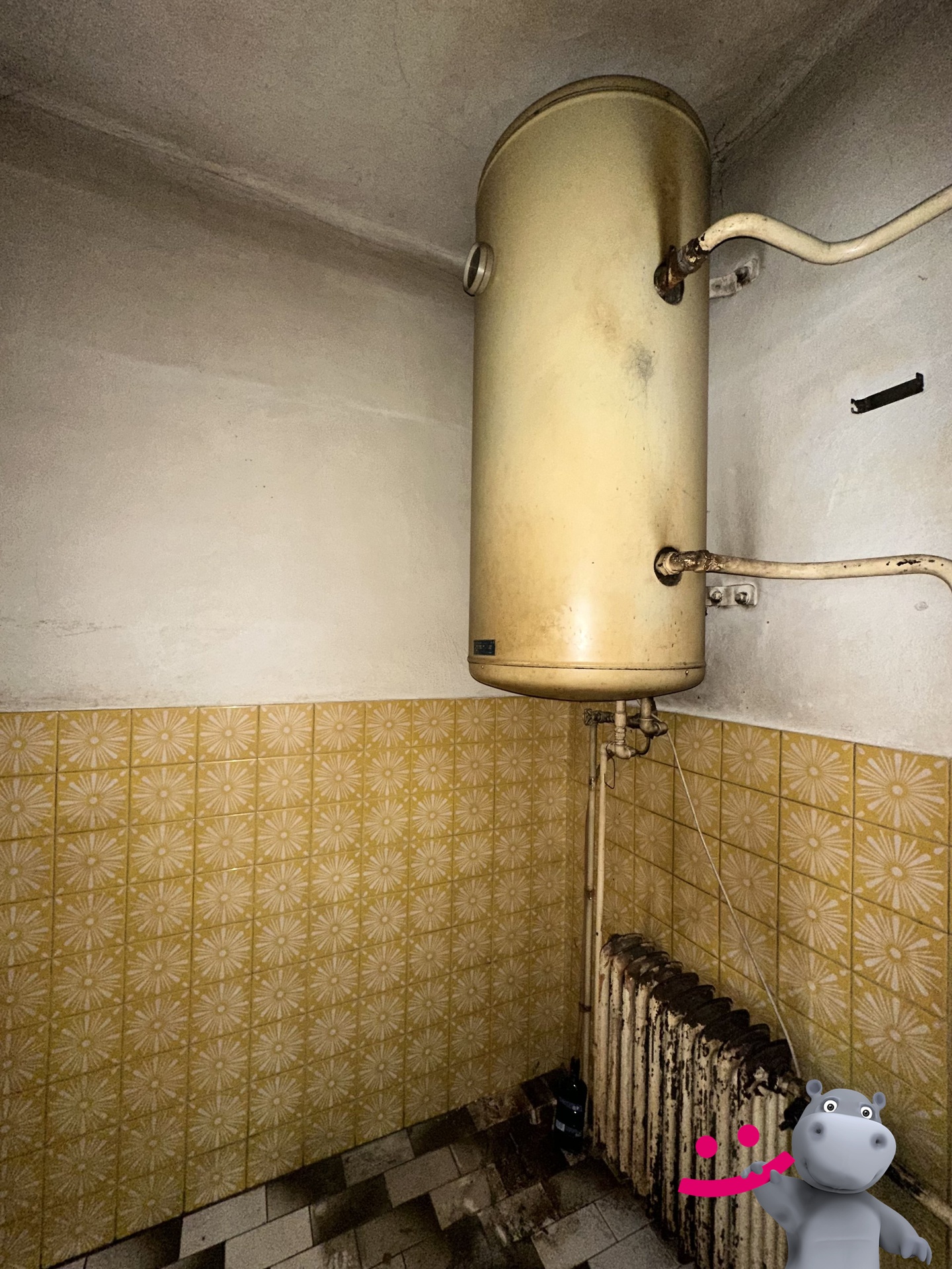 Vytápění je řešeno kotlem na tuhá paliva + radiátory.