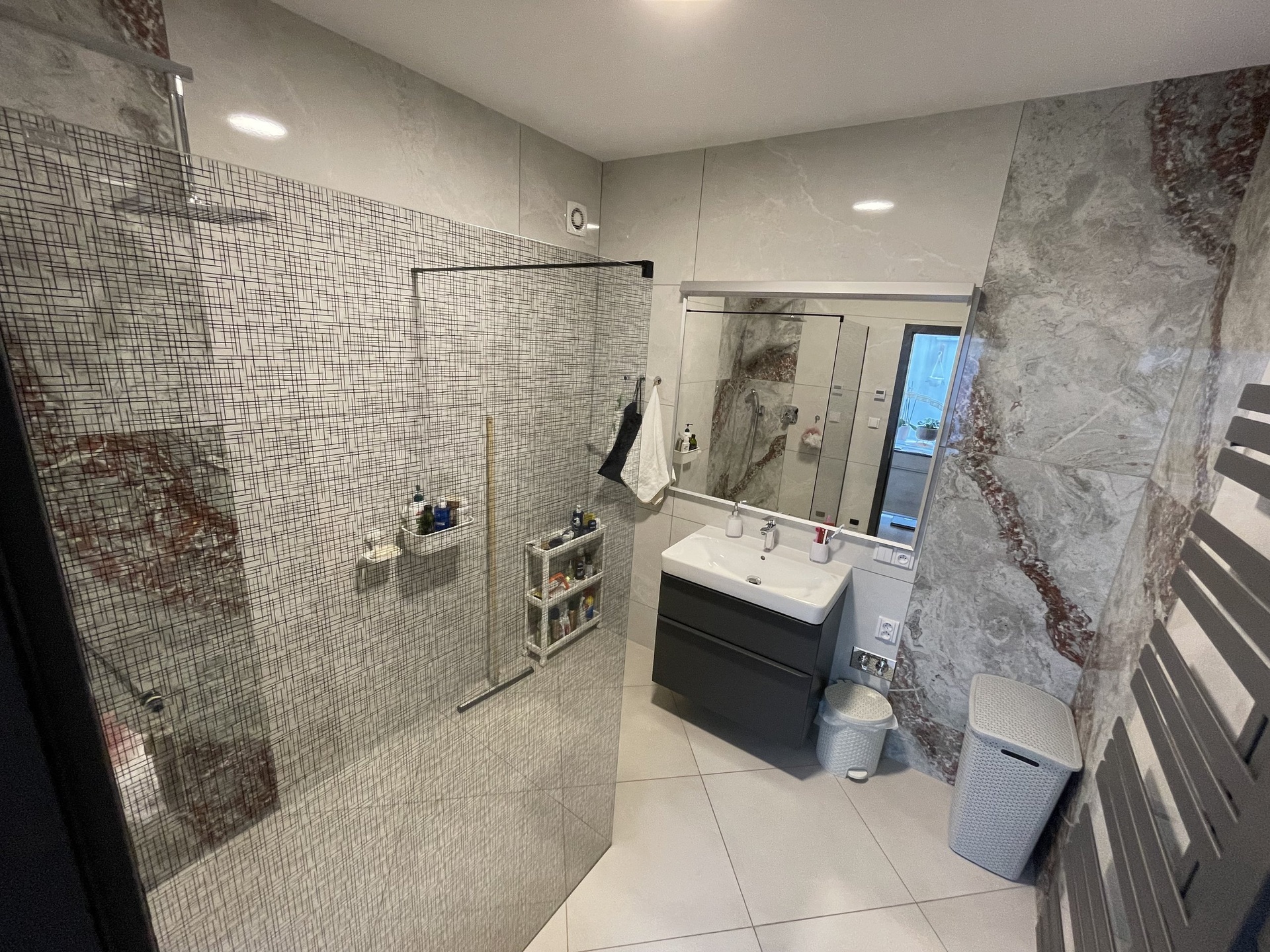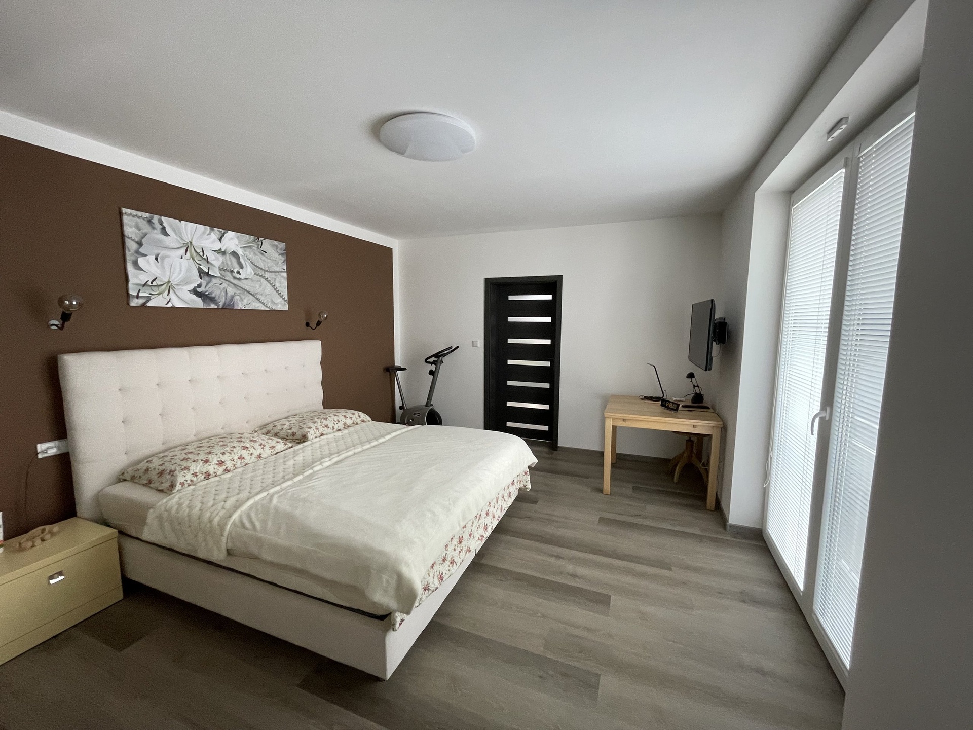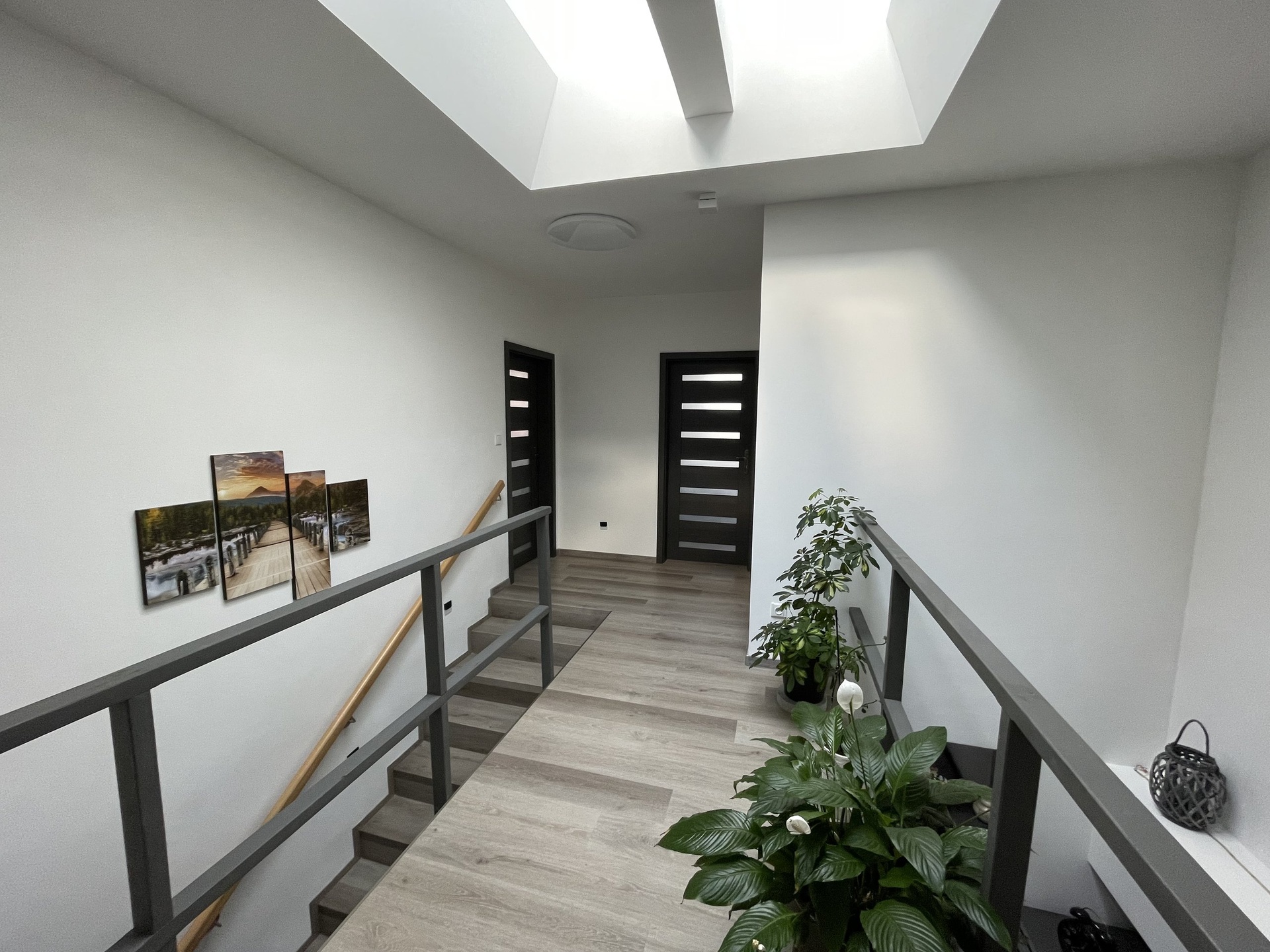 Vybavení: kuchyňská linka na míru s vestavěnými spotřebiči /sklokeramická varná deska s indukcí, digestoř, horkovzdušná trouba, mikrovlnná trouba, myčka, velká lednice s mrazákem/, barové posezení, podlahové topení, příprava na klimatizaci a krb, vinylové podlahy, dlažba, plastová okna s trojskly, se žaluziemi a protihmyzovými mřížkami; z ulice jsou nainstalovány předokenní žaluzie, vytápění tepelným čerpadlem, solární panely. Veškeré osvětlení - led světla.