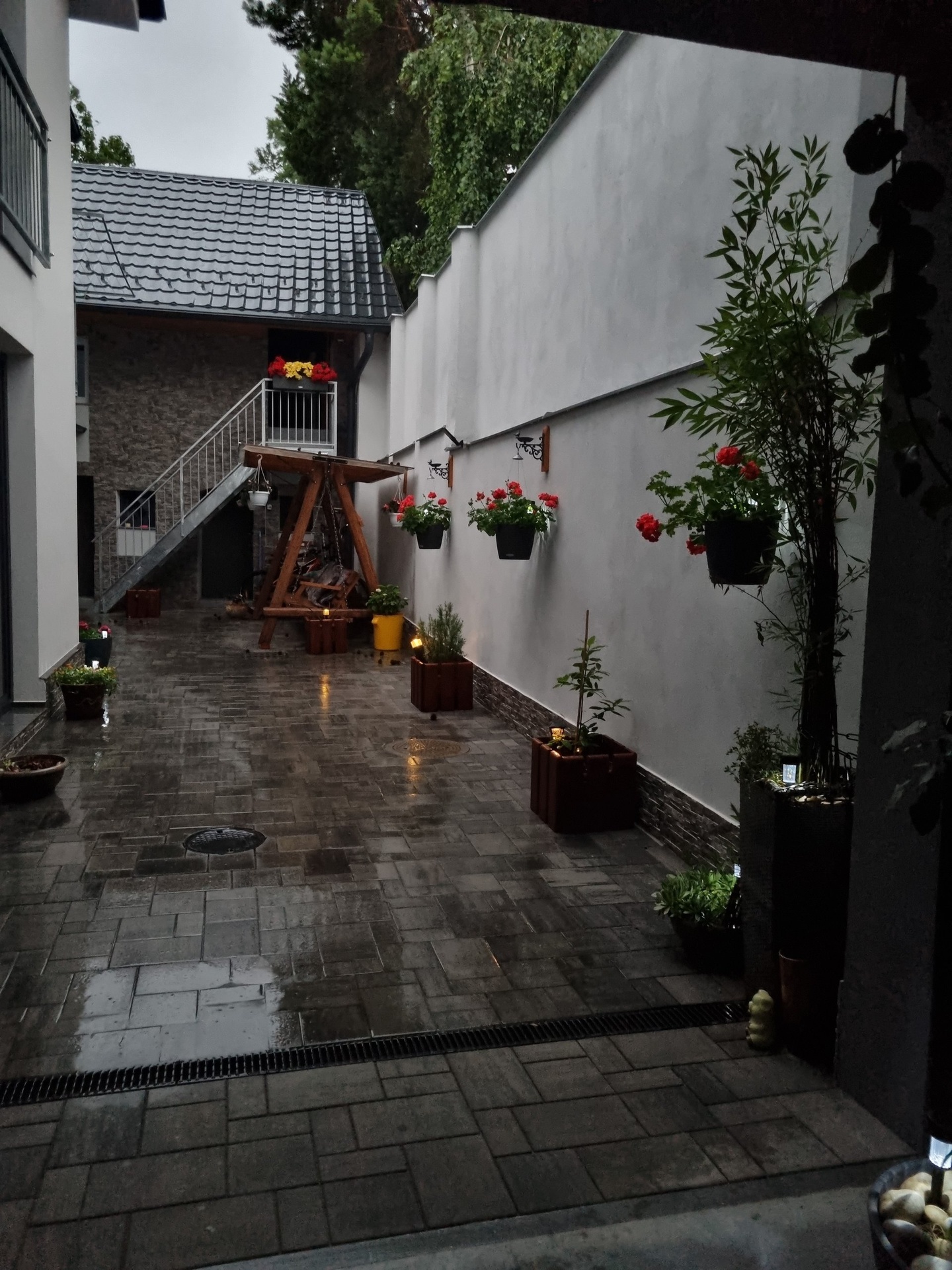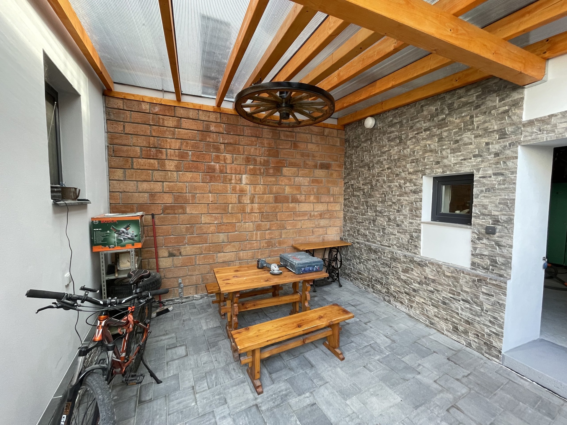 Dům disponuje velkou dvojgaráží propojenou s interiérem, posezením pod pergolou na dvorku, dále zahradou a dílnou s půdním prostorem, vinným sklepem a vlastní studnou. Srdcem domu vede moderní schodiště s přirozeným osvětlením.