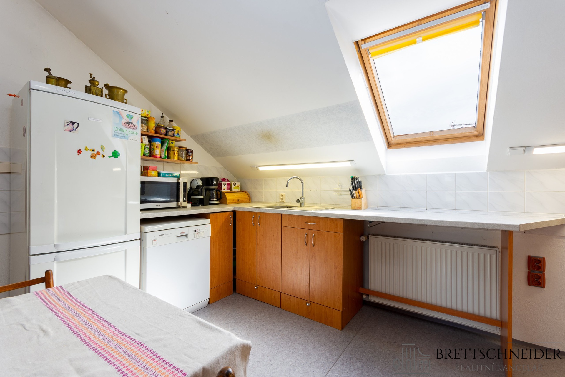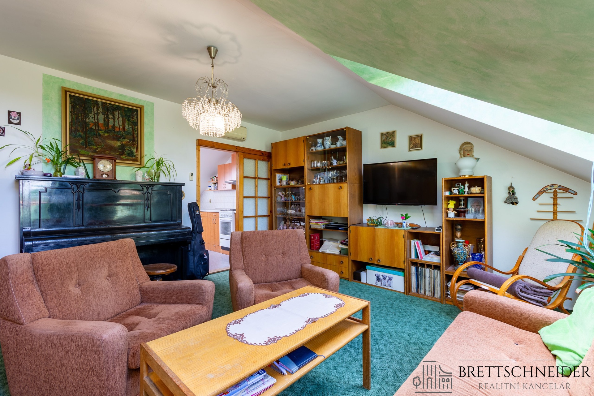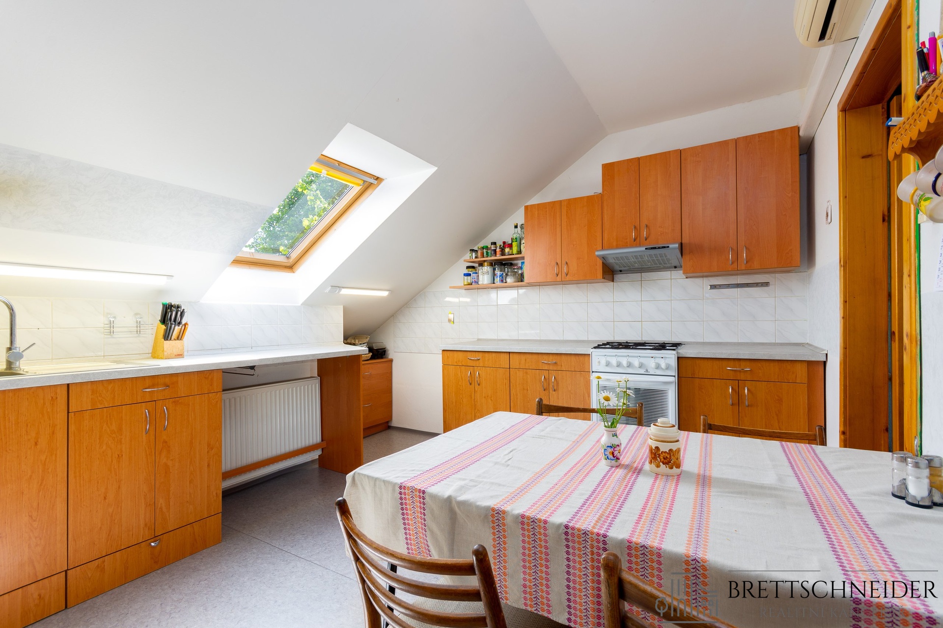 V horním patře se nachází bytová jednotka 4+1, která je ihned připravená k nastěhování – s moderními rozvody a klimatizací ve všech pokojích.