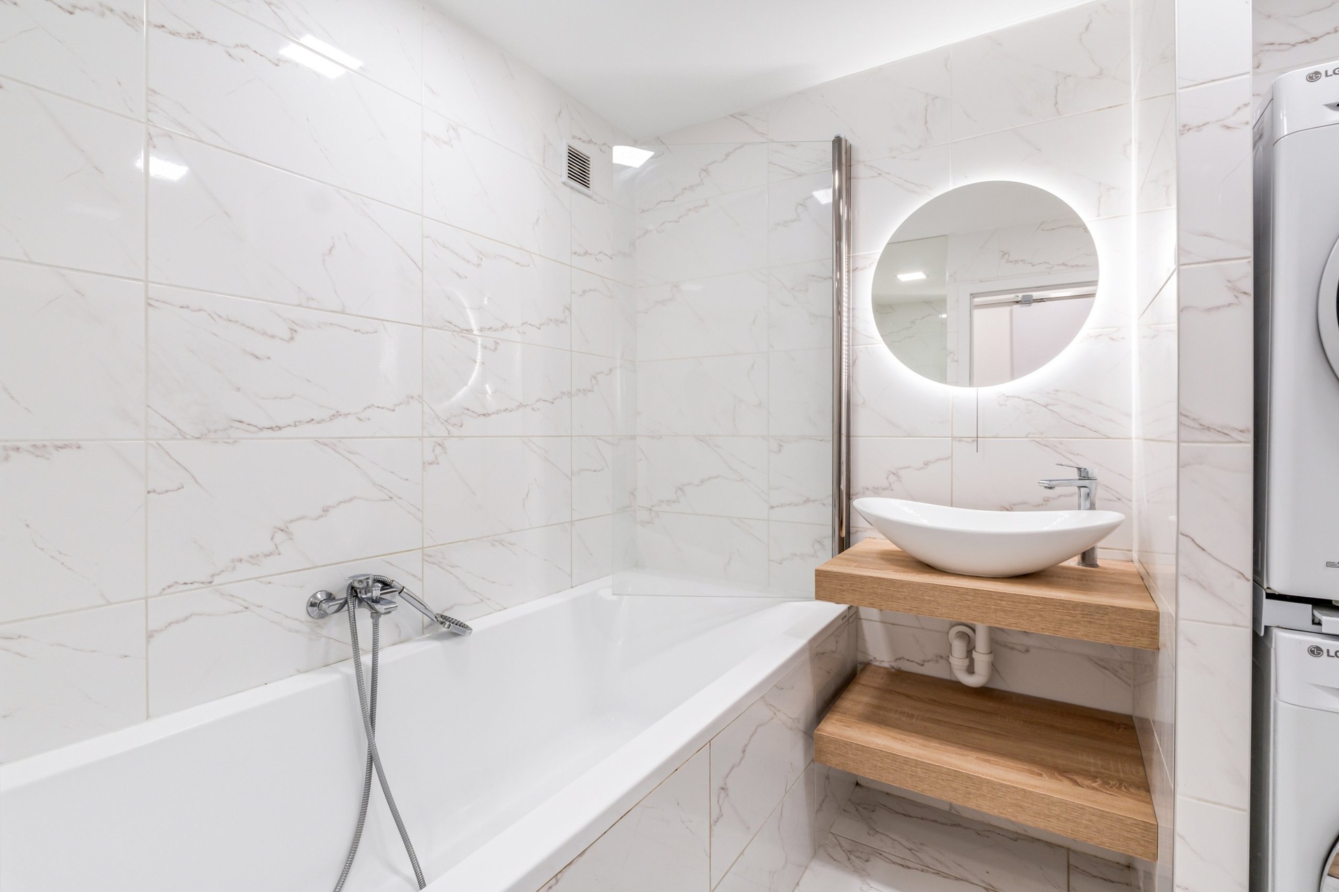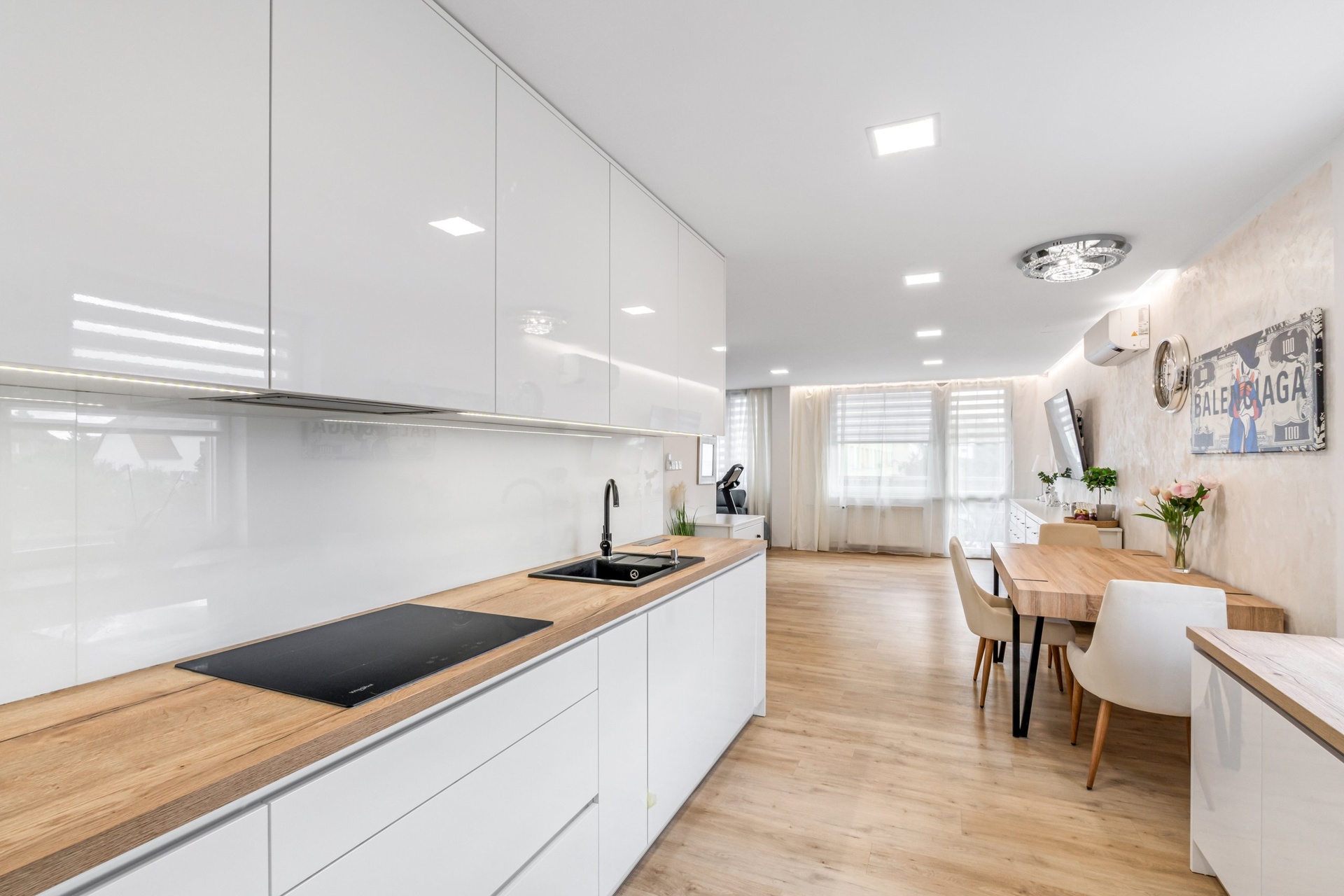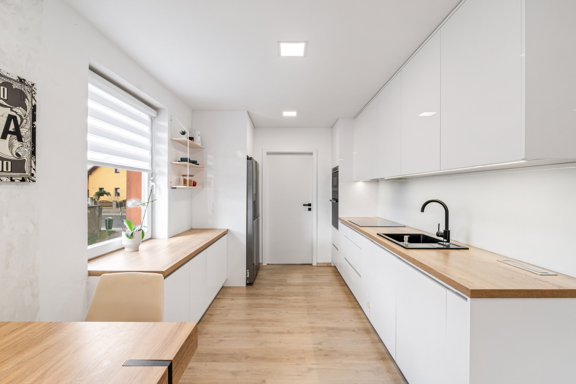 V rámci úprav byla mimo jiné realizována nová kuchyňská linka vyrobená na míru truhlářem. Součástí vybavení bytu je také klimatizační jednotka. Dispozičně byt nabízí obytnou část s kuchyňským koutem, další prostorné pokoje, koupelnu, samostatné WC a lodžii orientovanou směrem ke klidnější části okolí.