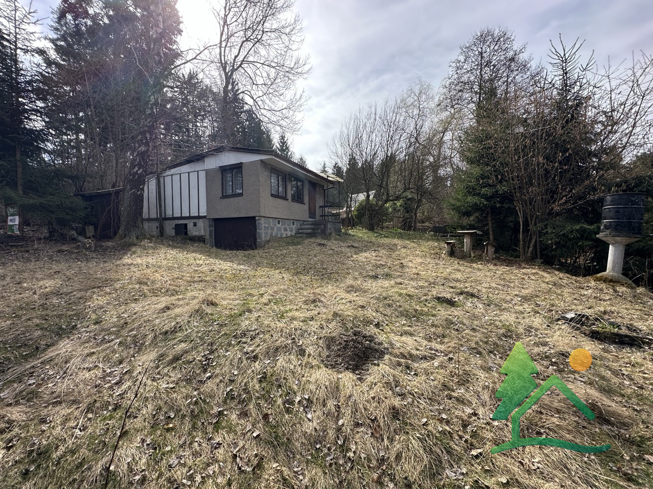 Součástí pozemku je chata určena ke kompletní rekonstrukci či demolici.
