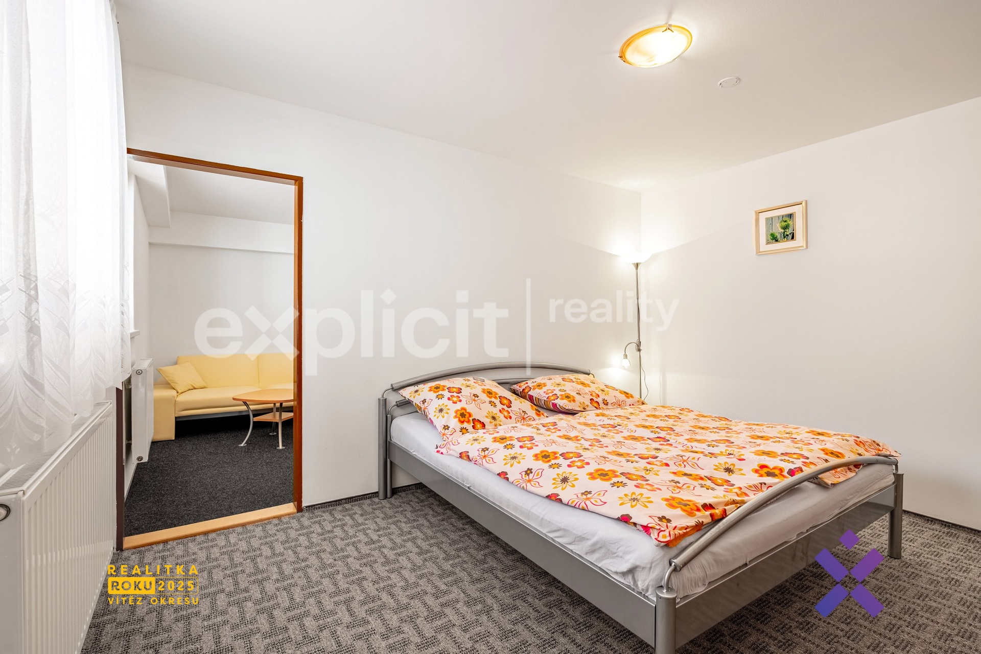 V horním patře se nachází čtyři vybavené samostatné pokoje, každý s vlastní koupelnou a toaletou. Tyto pokoje v současné době slouží jako penzion a poskytují stabilní příjem z krátkodobých i dlouhodobých pronájmů. Kromě toho je zde také kompletně vybavený byt, který může sloužit jako zázemí pro majitele nebo další možnost pronájmu.