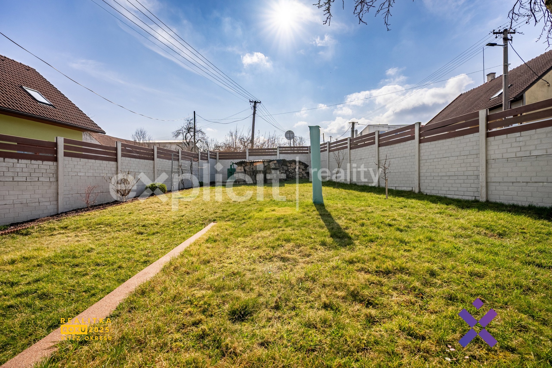 Prostorná zahrada, která je aktuálně zatravněná a nabízí dostatek prostoru pro odpočinek, zahradničení nebo rodinné aktivity. Na zahradu je přivedena voda s venkovním kohoutkem, který je napojen z prádelny. Vedle domu je kryté garážové stání.