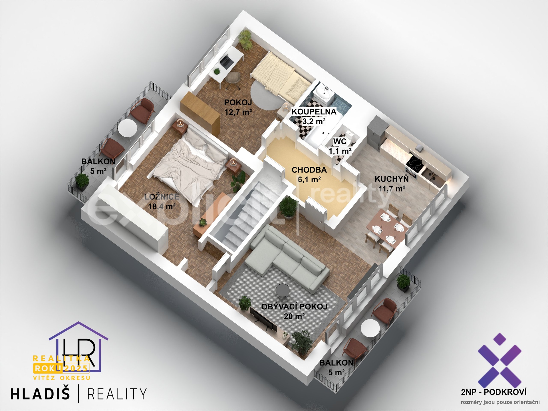 - balkon u ložnice 4,9 m², balkon u obývacího pokoje 4,5 m²