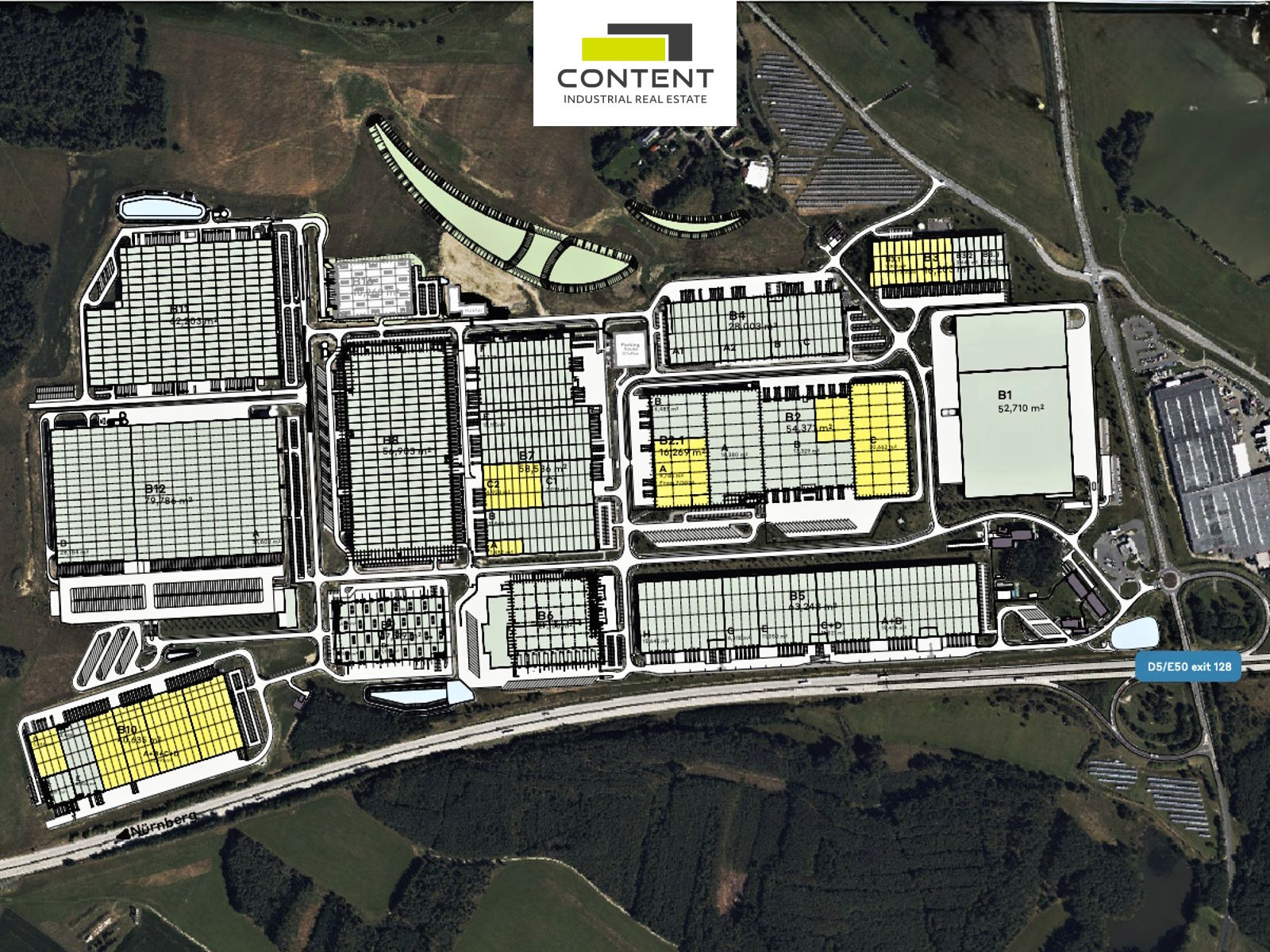 - moderní komerční park u exitu č. 128 z D5