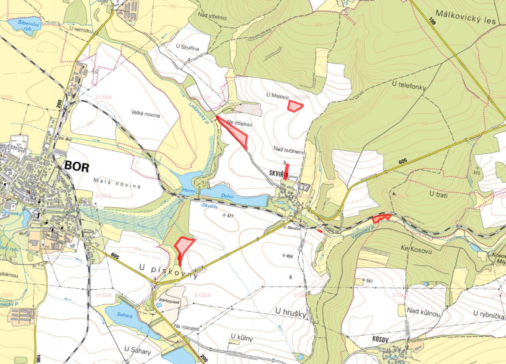 Jedná se o parcely zapsané na LV 861, v majoritním vlastnictví. Čísla parcel: 246/1, 467, 1000/1, 1000/3, 1000/6, 1000/31, 1088/2 a 1088/21.