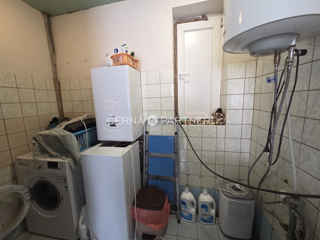 V domě jsou k dispozisi dvě koupekny, dvoje kamna jako zdroj tepla a plynový kotel pro ohřev vody. K domu patří před zahrádka, která je dostatečně malá/velká k zahradní realizaci.