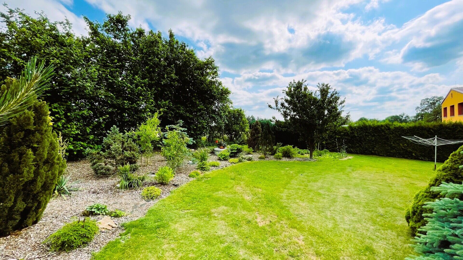 Dům se nachází na vlastním rovinatém, mírně svažitém jižně orientovaném pozemku o celkové výměře 1 306 m2 s překrásně založenou okrasnou i užitkovou zahradou a vzrostlými jehličnatými, listnatými i ovocnými stromy, která svým novým majitelům nabídne absolutní soukromí uprostřed přírody.