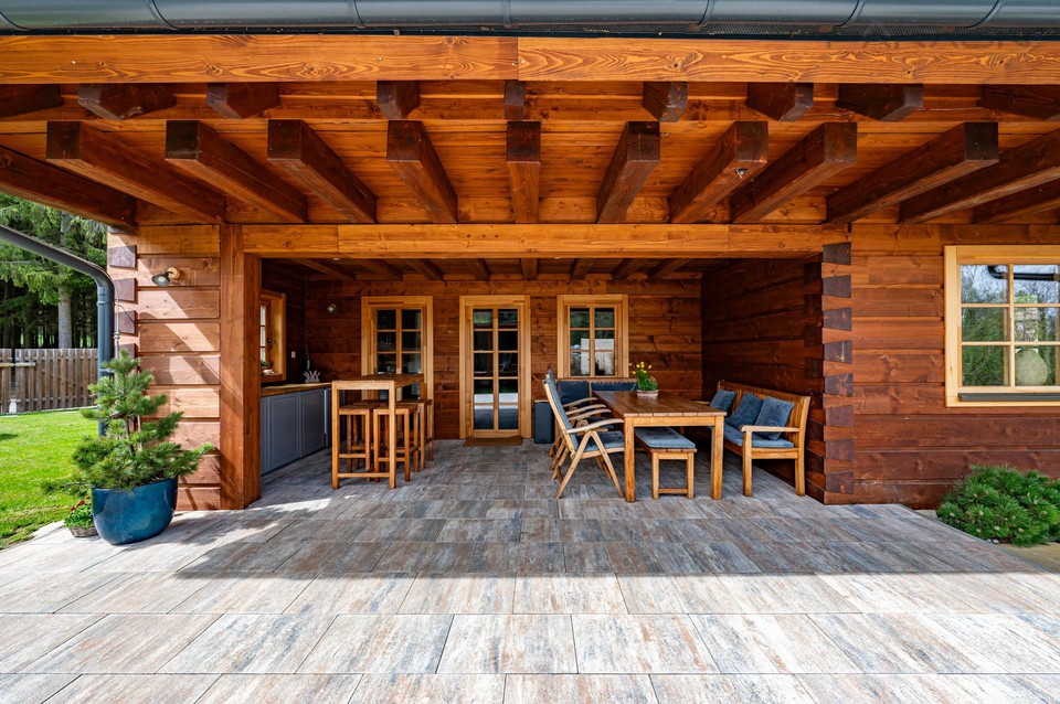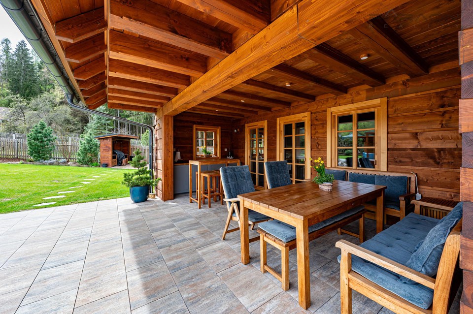 Na výstavbu roubené chalupy byly použity strojně opracované masivní profily ze smrkového dřeva, které dodávají stavbě přírodní a ekologický vzhled. Přístup k pozemku je zajištěn ze stávající obecní komunikace, pozemek je kompletně oplocen dřevěným plotem. Dřevěná okna s izolačním dvojsklem, podlahy jsou v 1. PP a v 1. NP řešeny dlažbou, ve 2. NP a na půdě je položena dřevěná plovoucí podlaha. Vytápění je v 1. NP a 2. NP zajištěno elektrickým podlahovým vytápěním a krbem kachlových kamen se dvěma topeništi na tuhá paliva, v 1. PP jsou dva radiátory. Ohřev vody zajišťuje dvoukomorový bojler o objemu 140 litrů. Přilehlá terasa je zastřešená s venkovní kuchyní a pohodlným posezením. Druhá terasa se zastřešeným plynovým grilem a ohništěm s dřevěnými špalky na sezení je situována vedle vstupní brány.