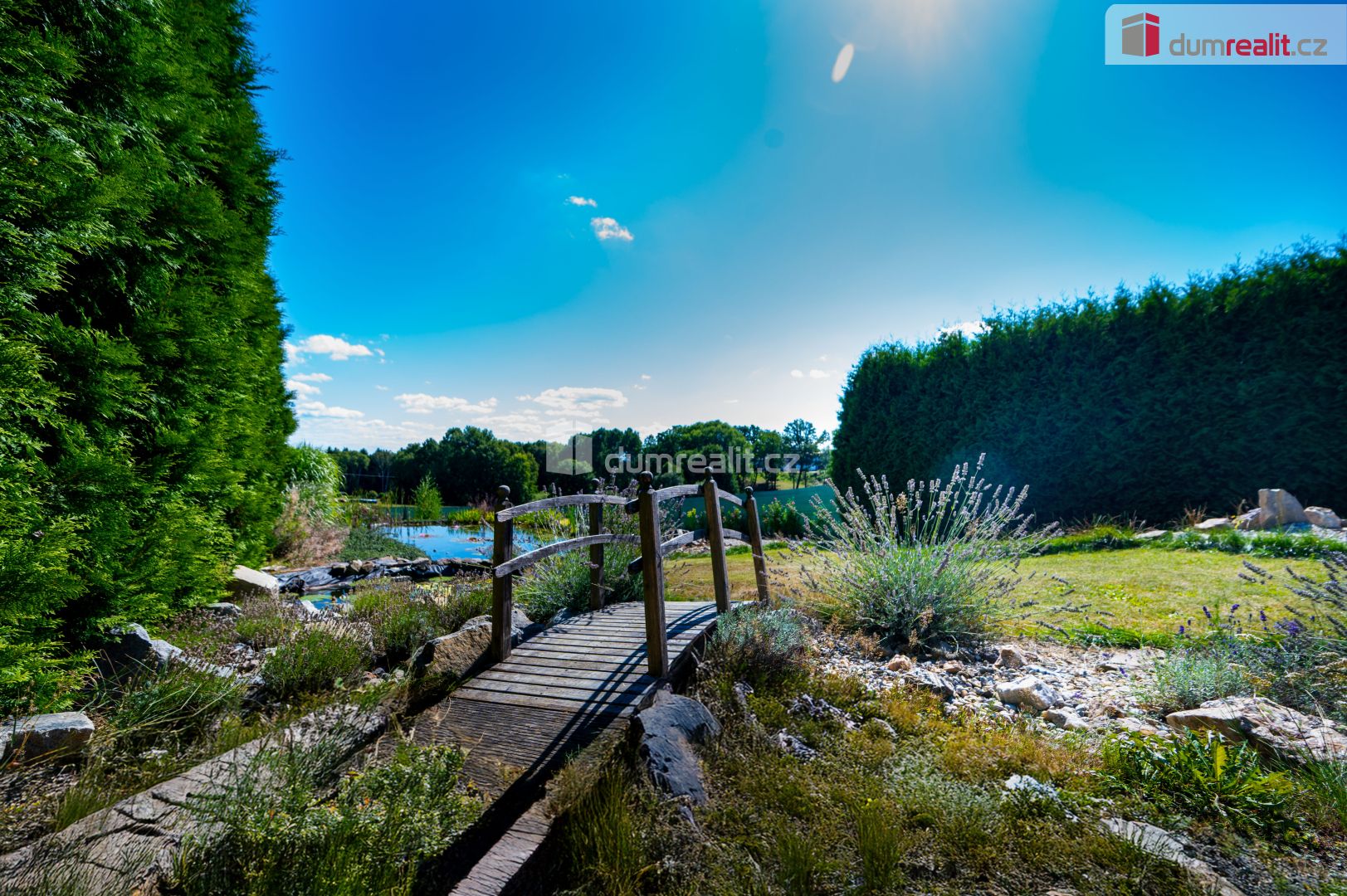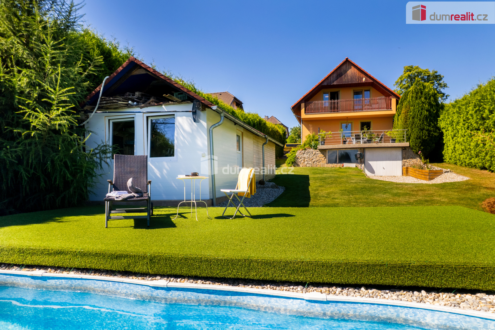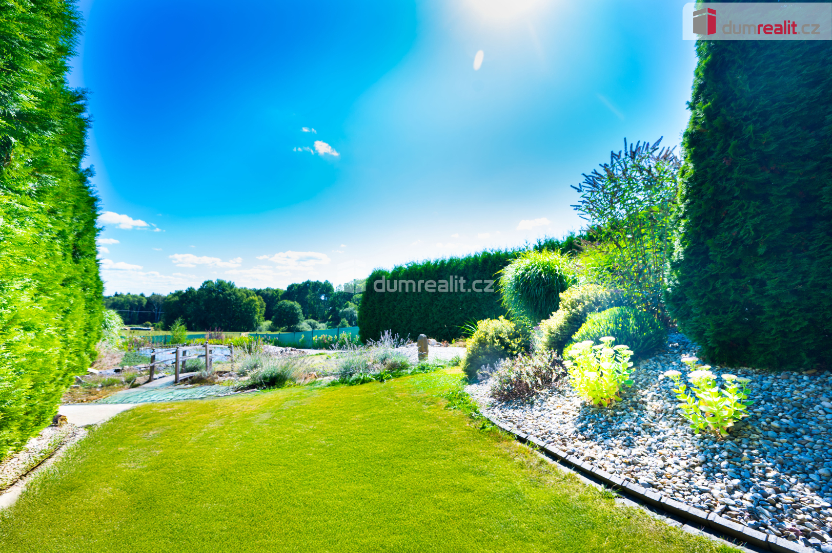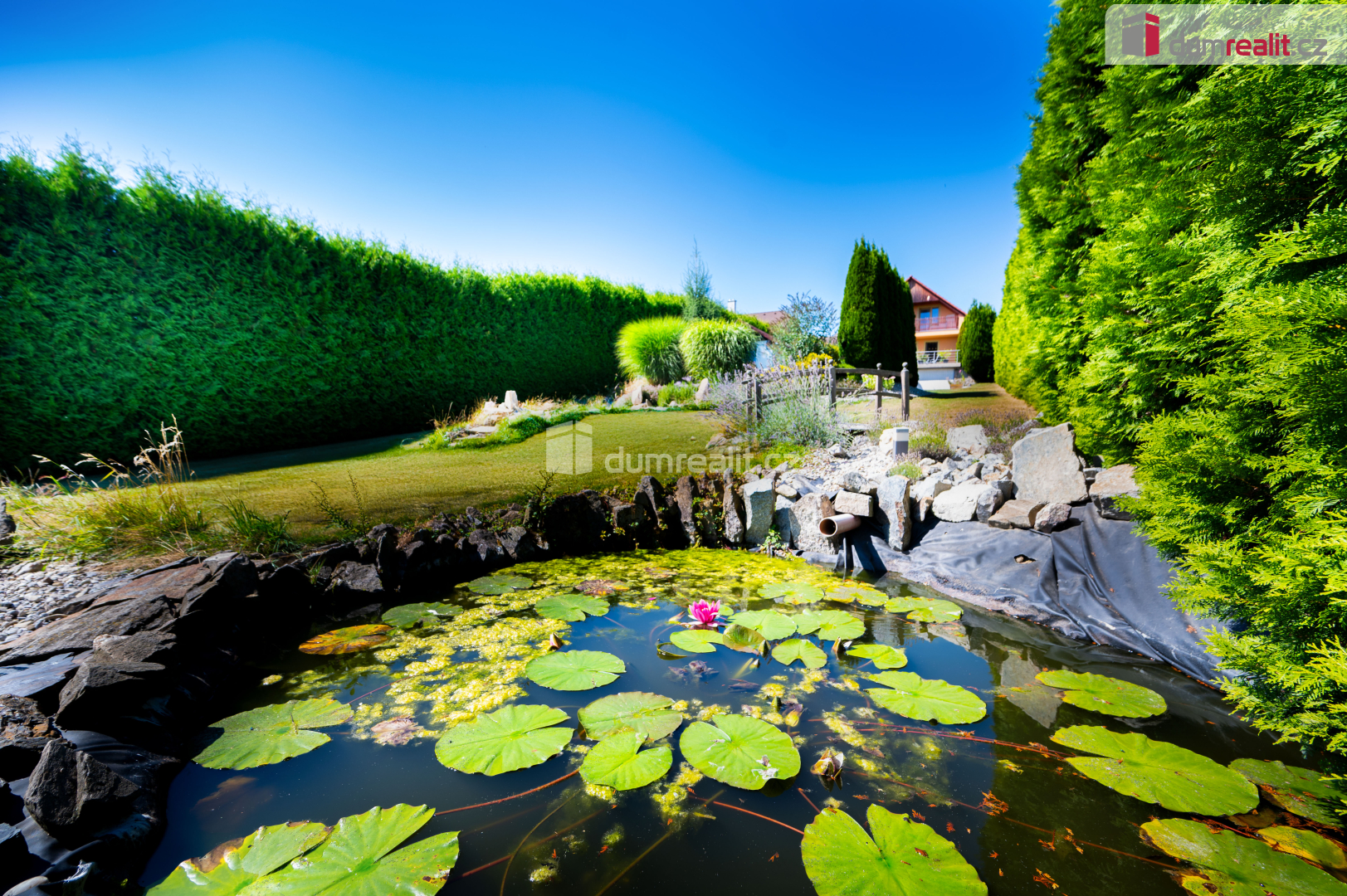 K prodeji, zateplený rodinný dům 5+1 s terasou, balkonem, garážemi, letní kuchyní se saunou, jezírke