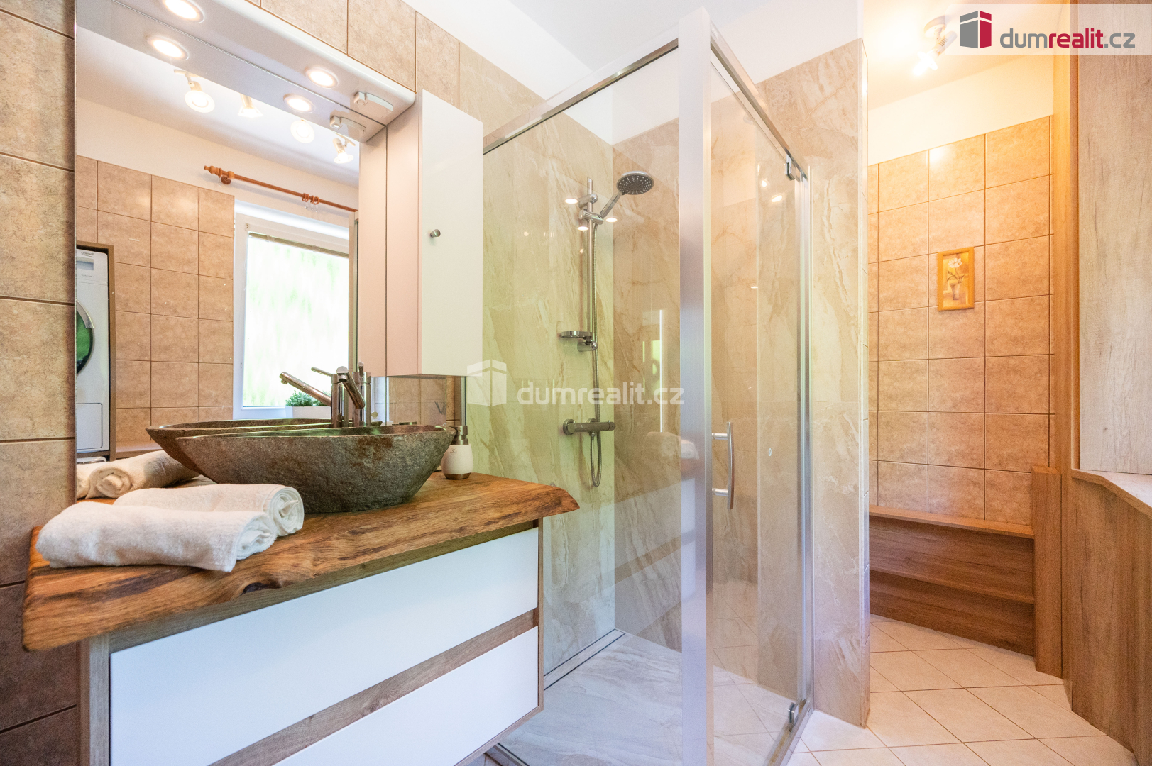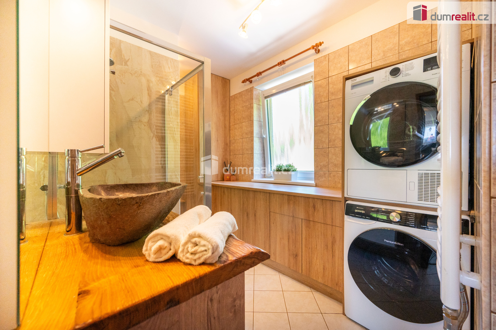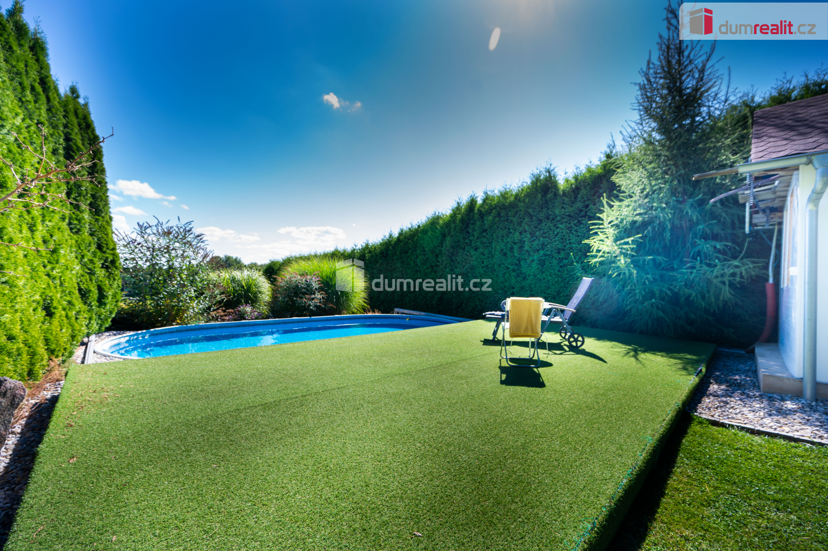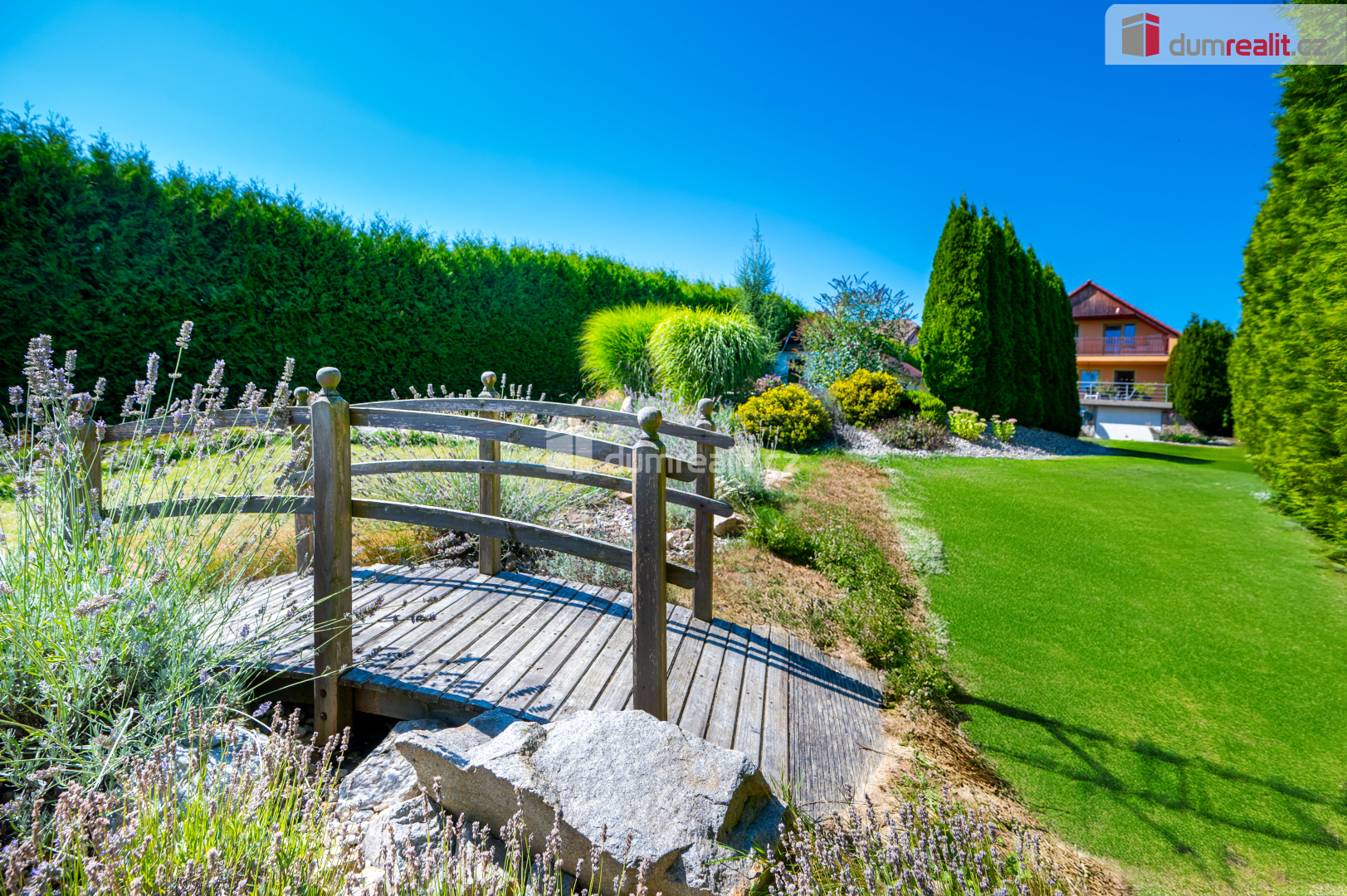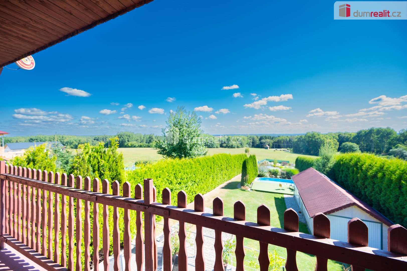K prodeji, zateplený rodinný dům 5+1 s terasou, balkonem, garážemi, letní kuchyní se saunou, jezírke