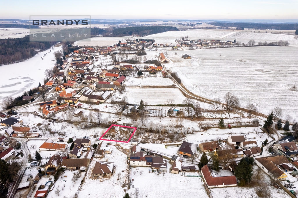 Pozemek o výměře 677 m2 se stavebním povolením na dům v obci Borovany u Milevska, okres Písek