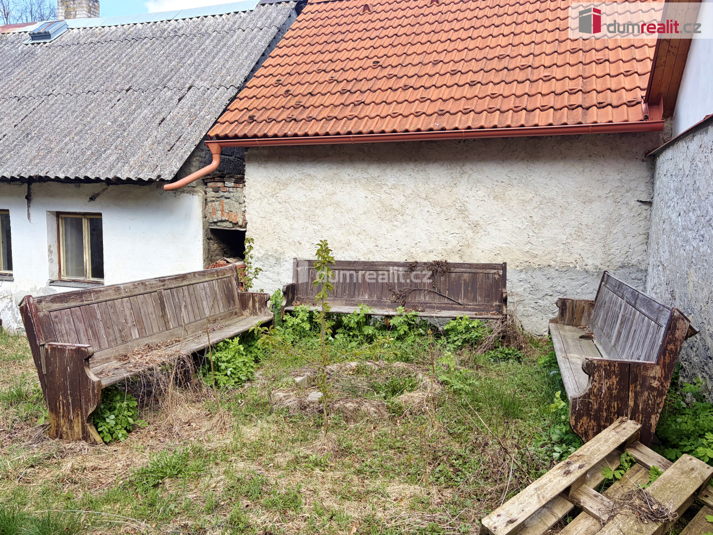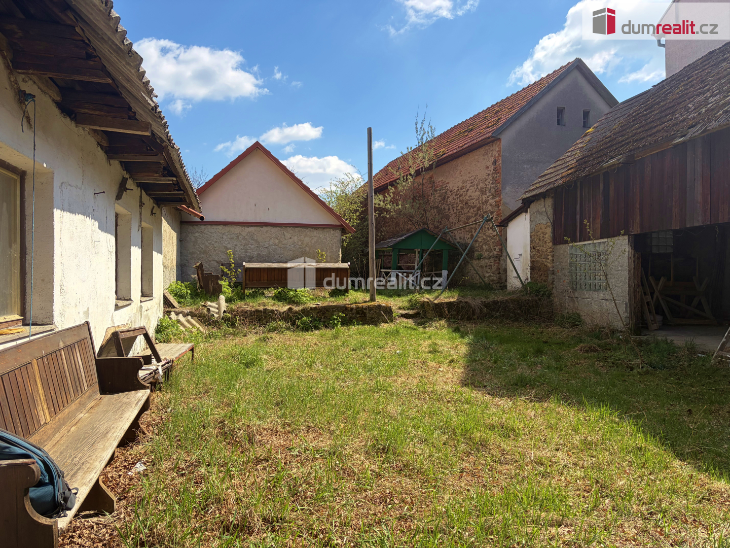 Zemědělské usedlosti v půvabné, klidné a pečlivě udržované obci s rybníčkem, uprostřed polí a lesů. Usedlost sestávající ze dvou budov a zeleného dvora leží ve vyvýšené části obce s výhledem do krajiny.. První budova je určena k bydlení - prostorná ložnice, kuchyně, samostatná toaleta, koupelna se sprchovým koutem a opravdu velký obývací pokoj se schodištěm do podkroví, kde se nalézají další dvě malé ložnice a velká půda. Druhá budova je částečné též využitelná jako obytná - jsou zde dvě malé ložnice. Převážně však slouží jako technické zázemí - skládky, stodola, zastřešené posezení. Dvůr je zatravněný, podlouhlý a stupňovitý s odděleným prostorem pro venkovní posezení u táborového ohně. Uzavřený dvůr nabízí velkou míru soukromí.