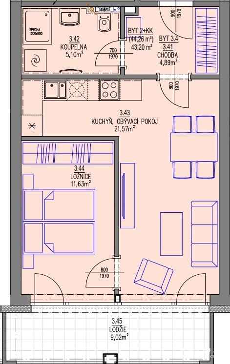 Dispozice bytu 2+kk: