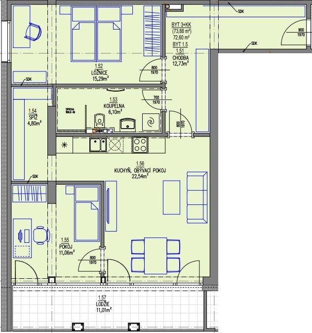 Kvalitní standardy vybavení – podlahy, dveře, obklady, sanita – možnost výběru podle vašeho vkusu
