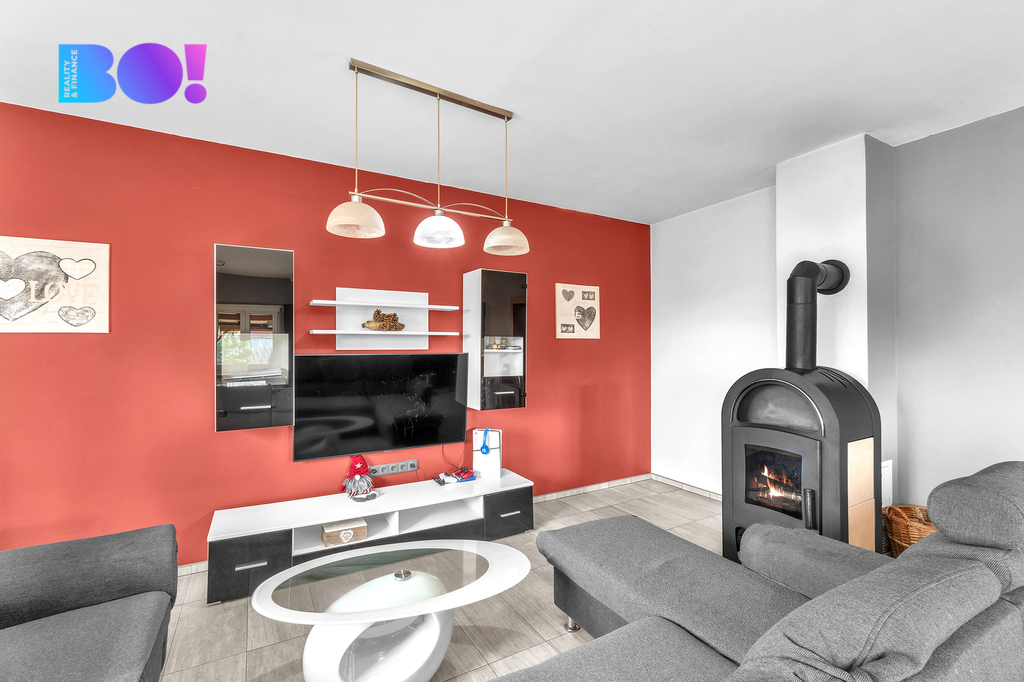 • Přízemí: zádveří, vstupní hala, prostorný obývací pokoj s jídelnou a krbem spojenou kuchyní, technická místnost, koupelna, WC.