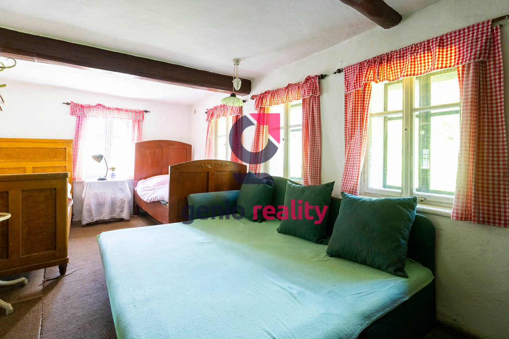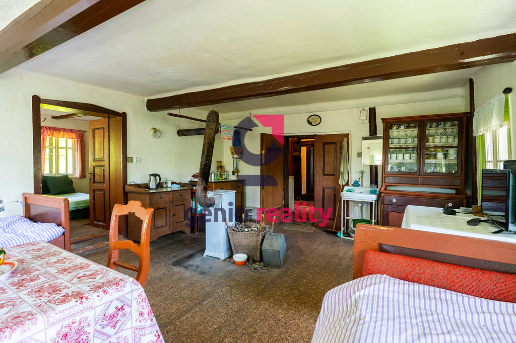 Prodej cca 200 let staré roubené chalupy k celkové rekonstrukci na klidném a slunném místě v obci Bozkov u Semil. V přízemí chalupy, která má vlastní číslo popisné se nachází chodba, velká světnice, dvě ložnice, suché wc a technická místnost na zahradní nářadí a nábytek, na půdě je volný prostor pro případné další pokoje, chalupa je z malé části podsklepena. Celková plocha pozemků včetně zastavěné plochy je 1034 m2, vytápění kamny na tuhá paliva, do chalupy je zavedena voda a elektřina 230/400, plyn není v celé obci. Přes pozemek teče malý potok např. pro zavlažování zahrady, chlazení piva atd. Nutno vybudovat jímku nebo septik na odpady. Energetický štítek není vypracován, uvádíme tedy třídu G. Pro více informací nebo domluvení termínu prohlídky mě prosím neváhejte kontaktovat.