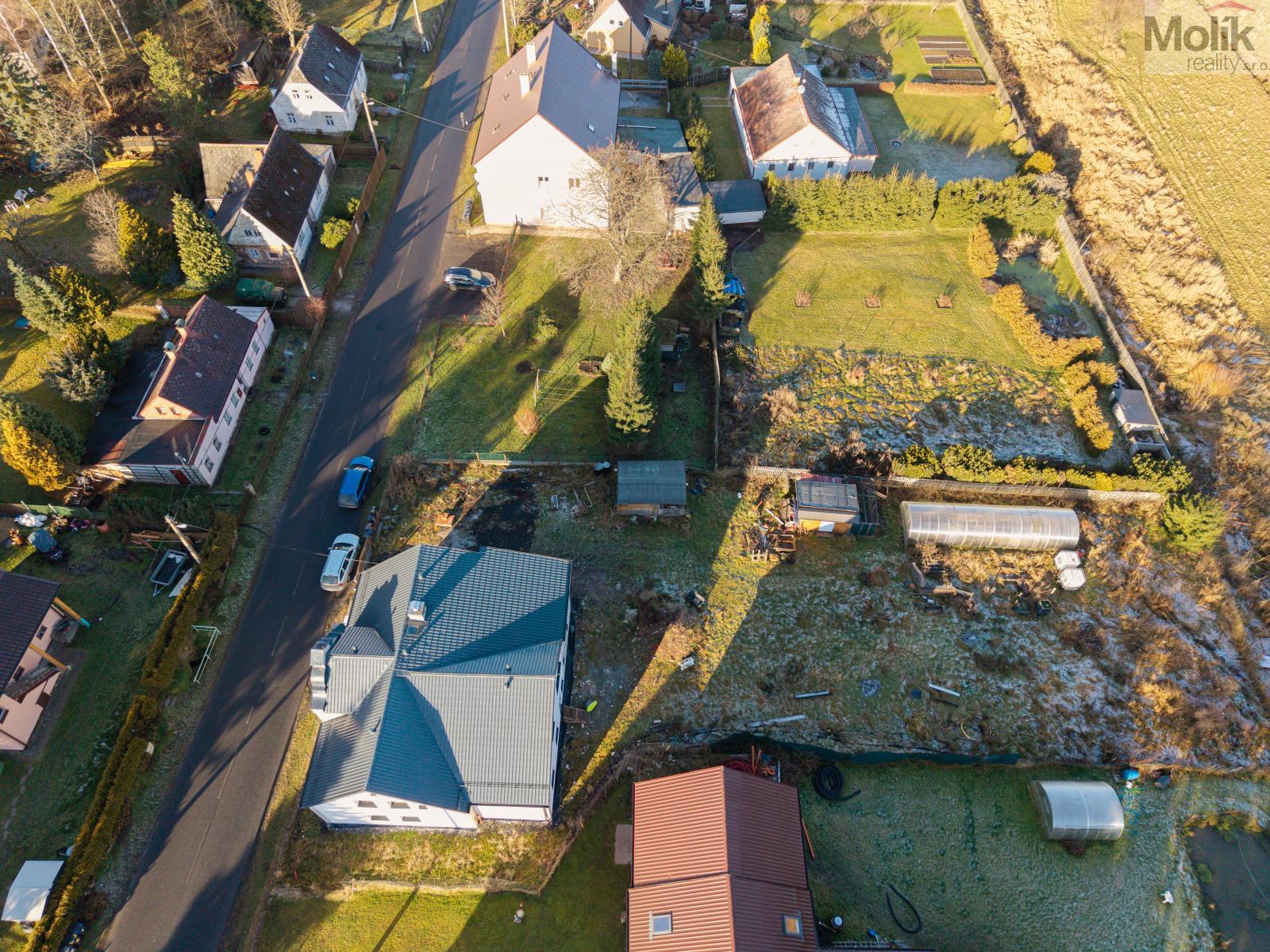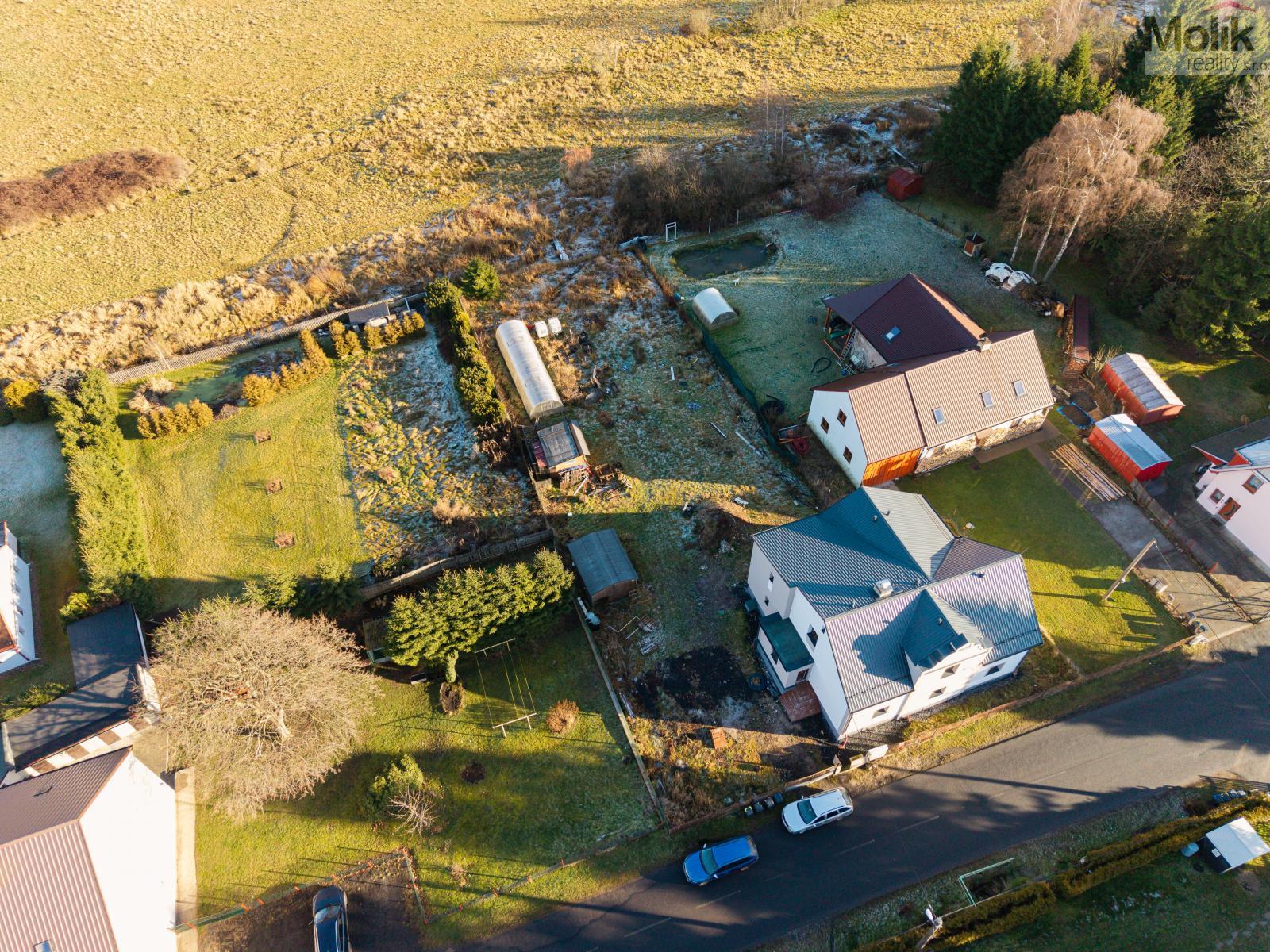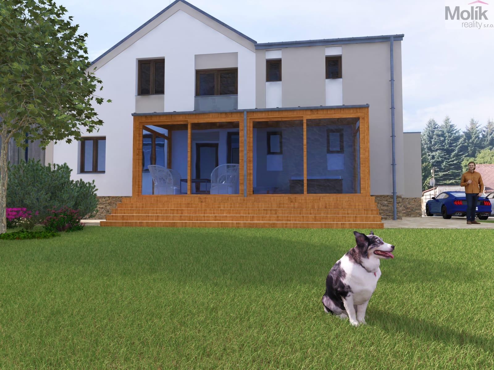 Na zahradě se nachází zahradní domek s možností připojení elektřiny,dále kurník a prostorný skleník. Zahrada nabízí realizaci zahradního jezírka. Z druhé strany domu, je příprava na terasu s vířivkou.