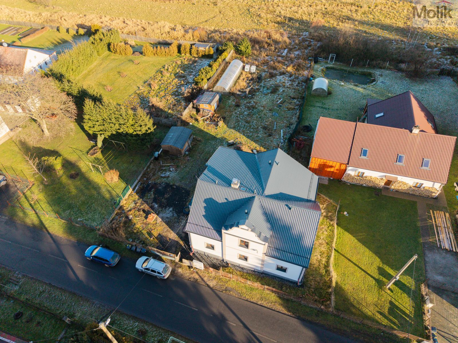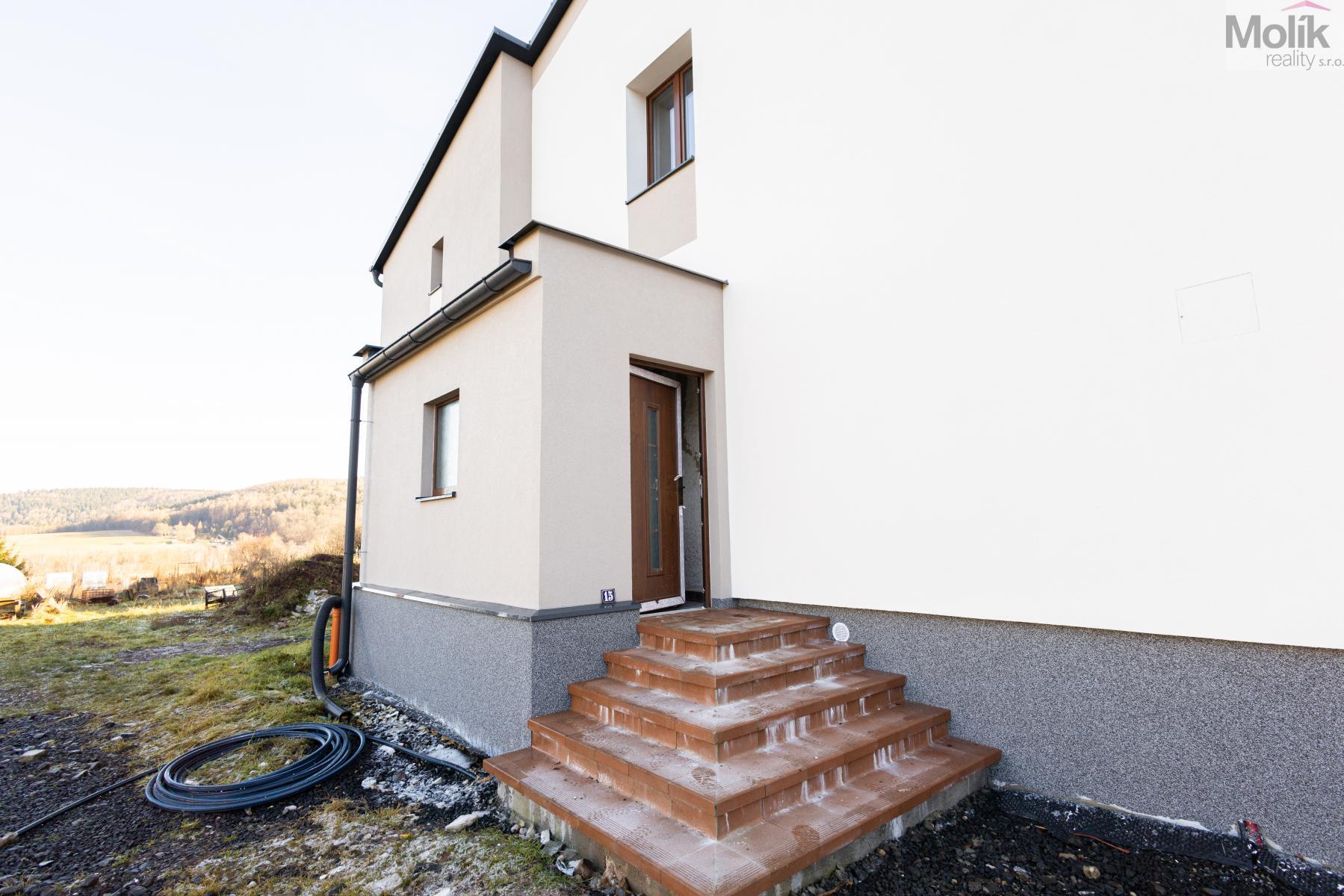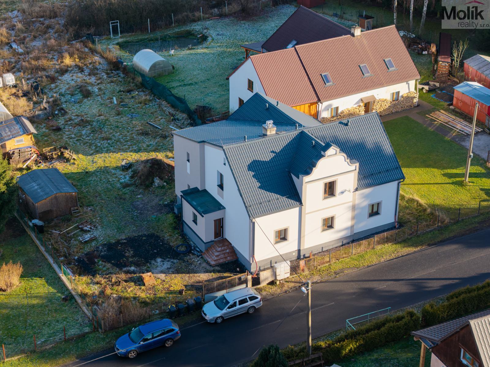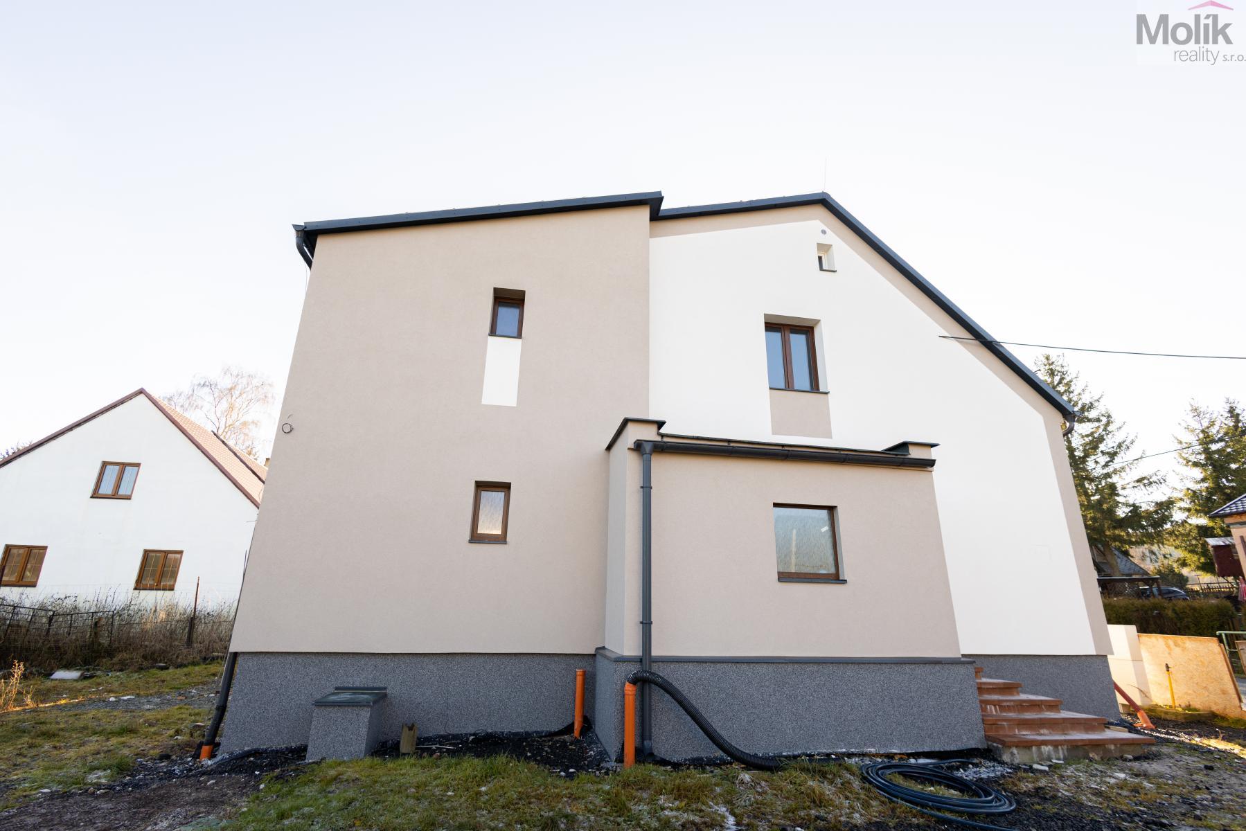 Dům je z cihlové konstrukce s novou zateplenou fasádou a novou zateplenou plechovou střechou, osazen plastovými okny. Nemovitost má nové rozvody elektřiny i vody, kde je teplá voda s cirkulací. V kuchyni je řešena teplá vody s elektrickým ohřívačem. Nemovitost je napojena na kanalizaci a vytápění je zajištěno tepelným čerpadlem typu země/voda. V přízemí je instalováno podlahové vytápění, v patře jsou radiátory. Součástí domu je také půda a sklep přičemž sklep je izolovaný a zateplený.