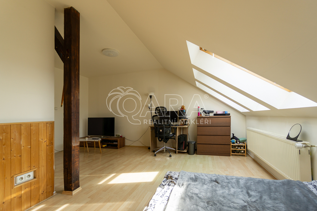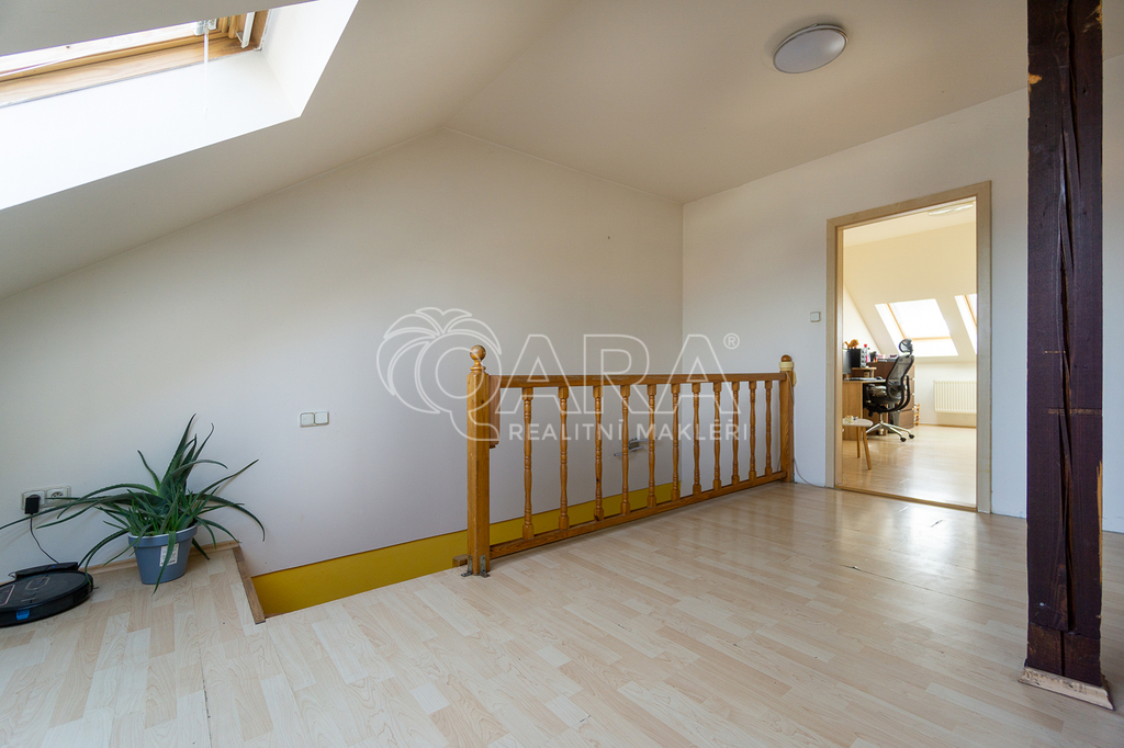 Byt disponuje částečným vybavením a prošel nedávnou renovací, v rámci které byla instalována plastová okna, nová koupelna a WC. Koupelna je vybavena sprchovým koutem, umyvadlovou skříňkou a pračkou. Okna jsou orientována na jiho-západ, což zajišťuje dostatek přirozeného světla a příjemnou atmosféru v celém bytě. V horním podlaží lze zrekonstruovat z prostorné chodby další místnost ( kancelář, pokoj atd).