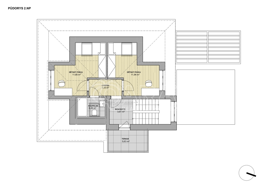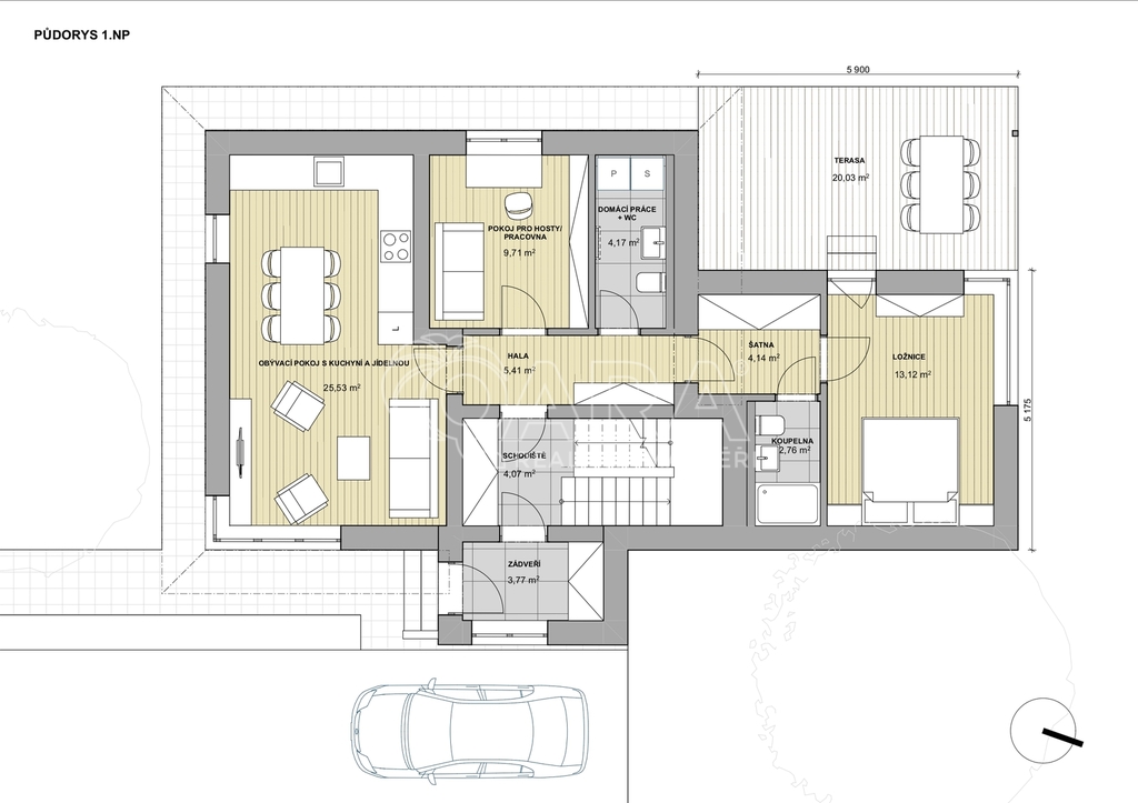 K dispozici je mimo jiné vypracovaná studie k vybudování přístavby nabízející další potenciál rozšíření obytné plochy.