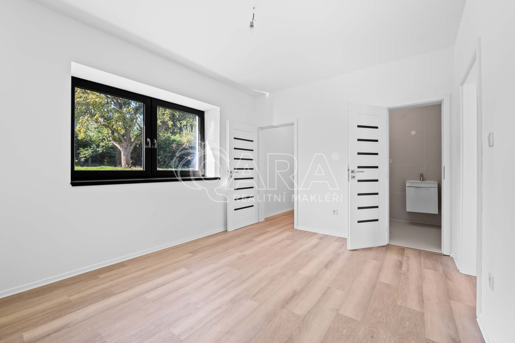 V přízemí se nachází prostorný obývací pokoj, kuchyně s přípravou pro novou linku dle vašich představ, ložnice s vlastní šatnou a koupelnou se sprchovým koutem, dále vstupní hala a samostatná toaleta.