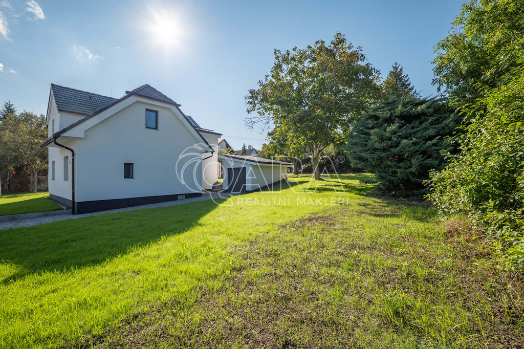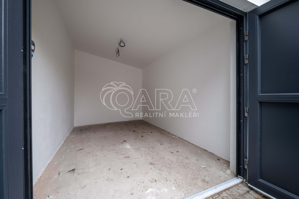 Veškeré technologické zázemí je instalováno ve sklepě. K domu také náleží samostatná garáž.