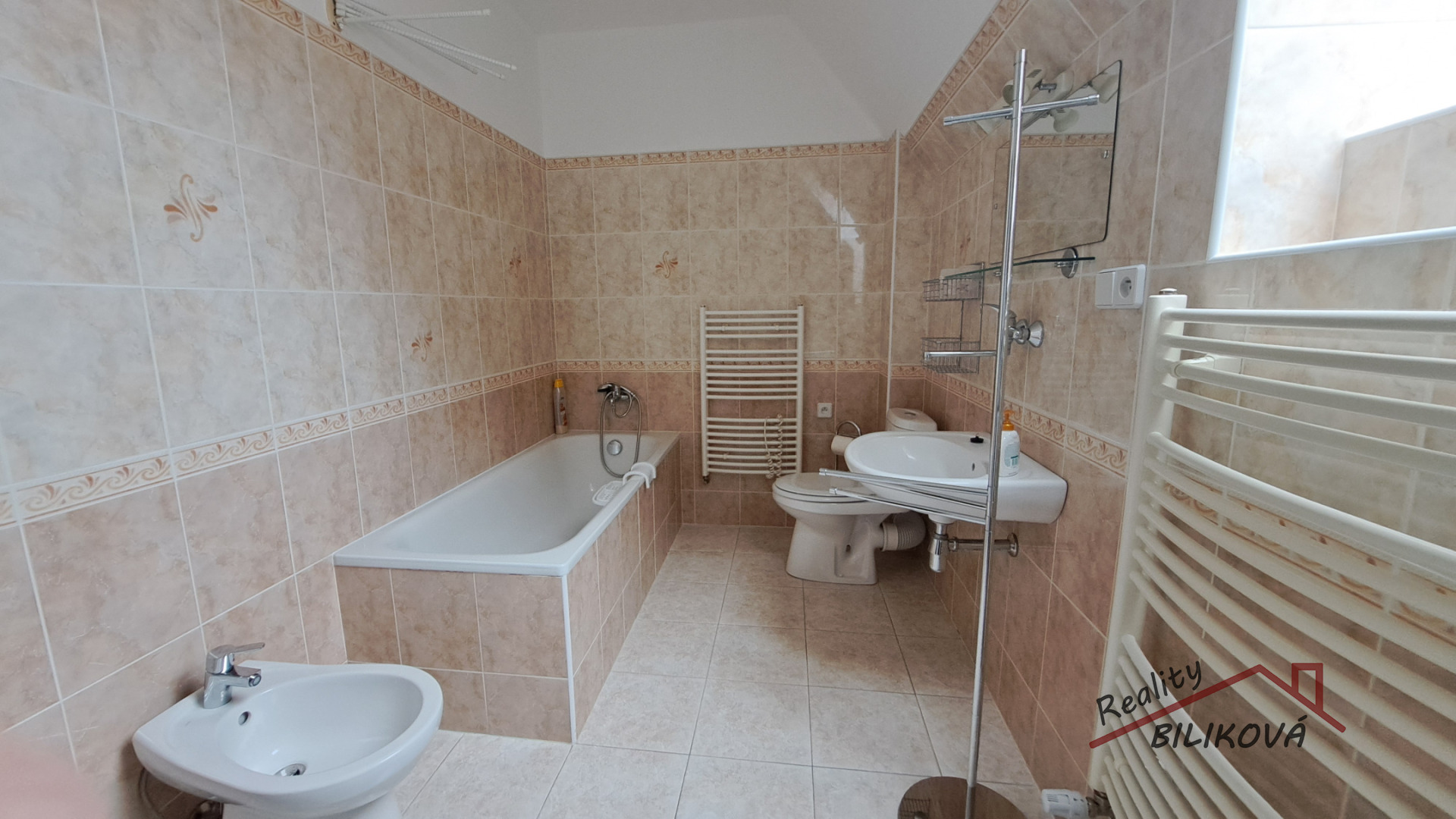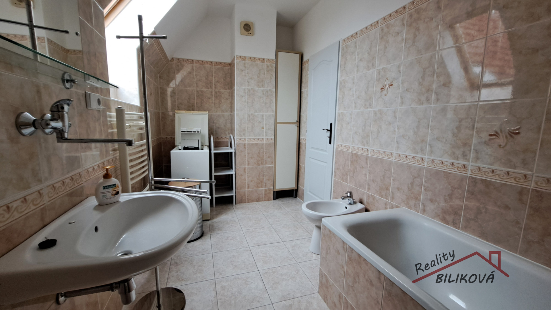 Nabízím k pronájmu byt o výměře 77m2, v patře rodinného domu v centru města Brandýs nad Labem, ul. Riegrova. Byt je volný od 1.12.2025, vhodný max. pro 2-3 osoby, bez zvířat. Byt je vytápěn centrálním plynovým kotlem s ohřevem vody pro celý dům. Měřáky na vodu a elektřinu v bytě. Dispozice bytu: předsíň (12m2) obývací pokoj (26,8m2) s kuchyňským koutem (14m2), ložnice 16,9m2), koupelna s WC. Vybavení bytu: předsíň - botník, věšáková stěna se zrcadlem, skříně. Kuchyň - kuchyňská linka, spotřebiče (plynový sporák s elektrickou troubou, mikrovlná trouba a lednice. Stůl, 6 židlí. Obývací pokoj je bez vybavení, možnost ponechání stolek, skříňky. V ložnici 2 postele a skříně. Vybavení je starší, ale funkční. Velkou výhodou je poloha domu, dům se nachází nedaleko centra města, zastávka bus 200m, ZŠ, MŠ v ulici. Parkování na ulici. Majitel preferuje nekuřáky. Více informací prosím přes email.