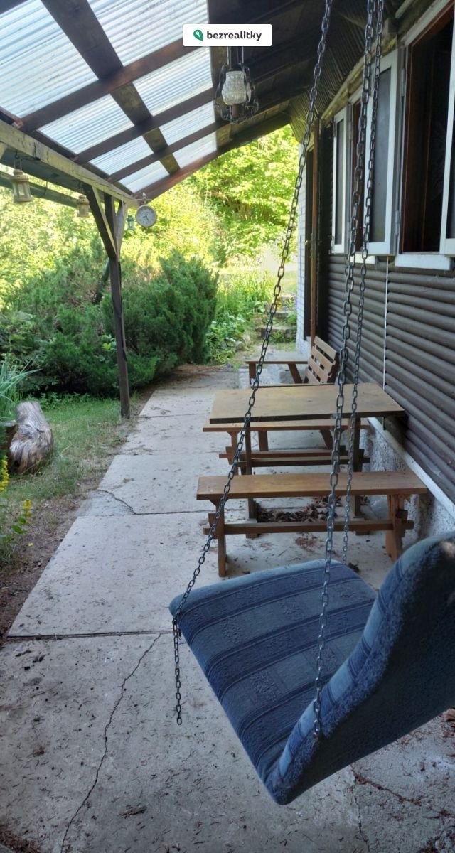 Chata je částečně zděná, částečně srubová s dispozicí 2+kk. Má jednu ložnici (palanda a postel) a jednu místnost plnící fukci obýváku (rozkládací gauč a parádně sálavá kamna) a jídelny (stůl a židle) a přímo navazuje na předsíň a oddělený kuchyňský kout (lednice, mikrovlnka), za kterým je téměř dokončená nová koupelna. Před chatou je úžasná veranda se stolem, lavicemi a závěsným houpacím křeslem. Stíněnou zastřešenou verandu oceníte nejen za parných dní, ale i za deště. Zezadu na chatu navazuje prostorná přístavba, kde je spousta nářadí, dřevo a suchý záchod. Ve svahu je také zapuštěný malý sklípek na chlazení pití na ideální teplotu.