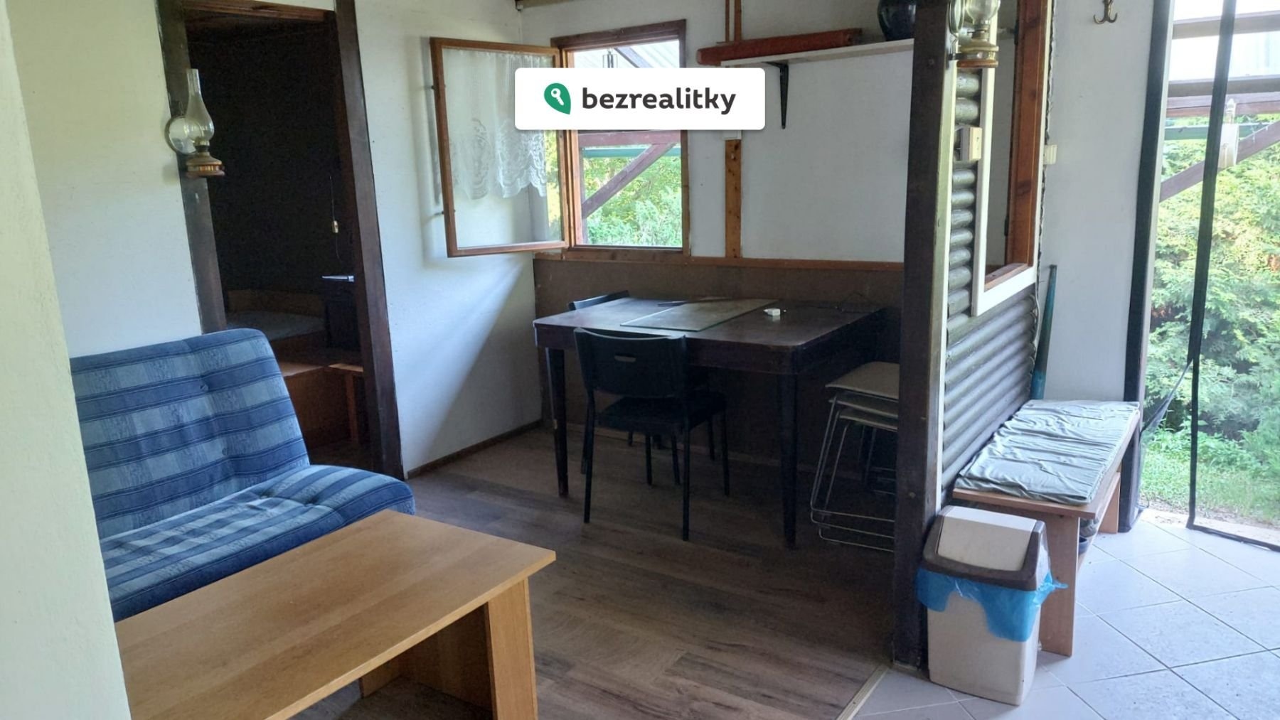 Chatu prodávám zařízenou, tedy včetně vybavení, nábytku, lednice, mikrovlnky, nádobí a hromady nejrůznějšího zahradního i dílenského nářadí.