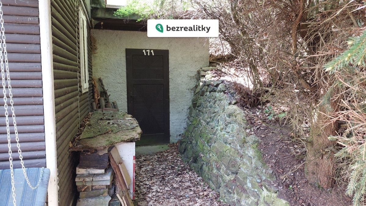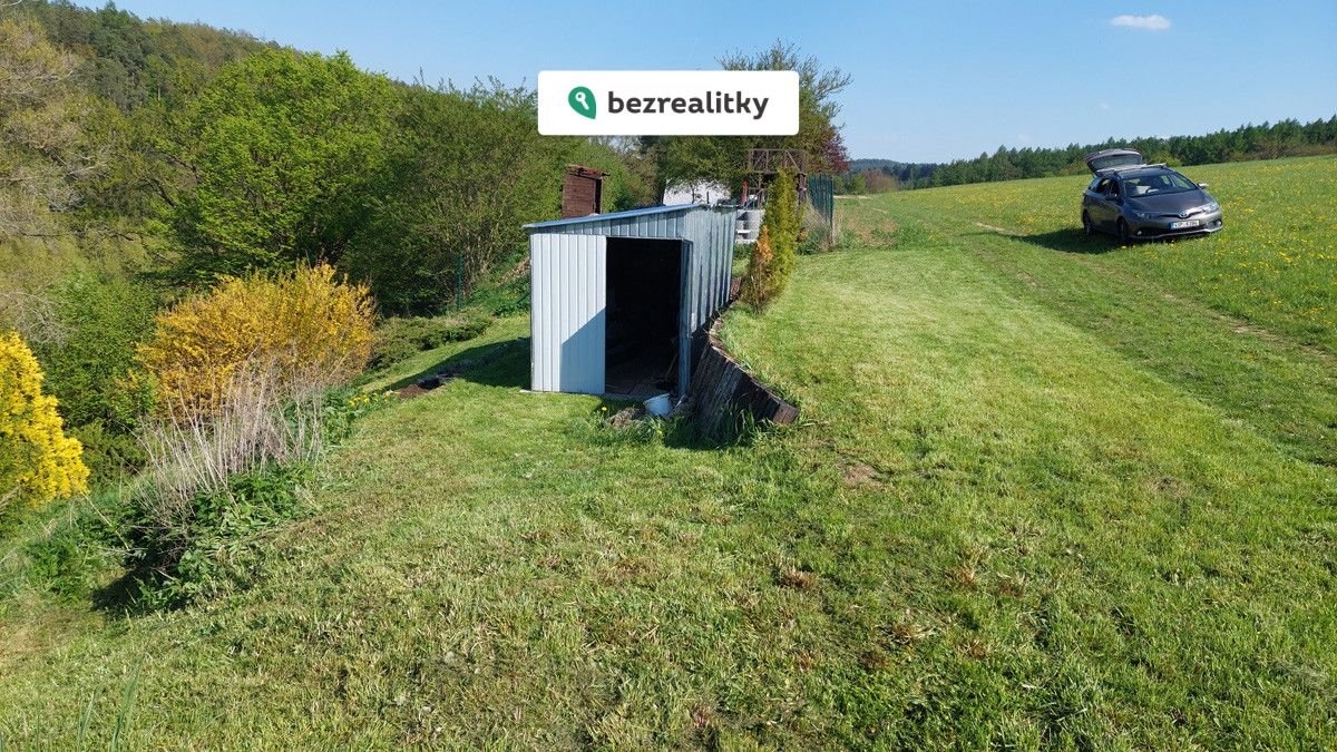 Chata stojí ve svahu nad potokem Loděnicí, bezpečně vysoko mimo jakoukoli povodeň. Ve svahu je několik terásek (samotná chata s travnatým pláckem, zahrádka s vyvýšeným záhonem, kompost a velká plechová bouda na nářadí a sekačku, příjezdová cesta) propojených částečně zděným, částečně pražcovým schodištěm. Na pozemku rybíz, kvanta malin a lesních jahod. Od auta k chatě 20m po schodech. Kvůli schodům se asi chata nehodí pro někoho, kdo má bolavá kolena.