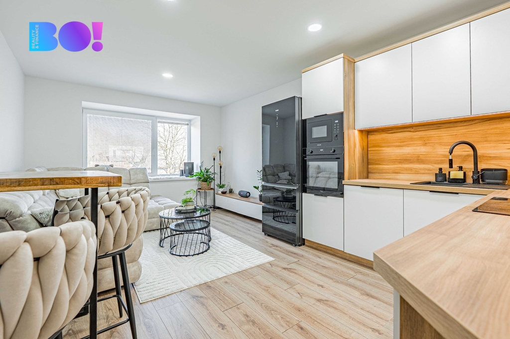 Hledáte bydlení, které kombinuje komfort novostavby, chytře využitý prostor a výhody vlastního venkovního vyžití? Nabízíme k prodeji exkluzivní, částečně vybavený byt 3+kk o rozloze 67 m², který se nachází v revitalizovaném bytovém domě v Bravanticích.