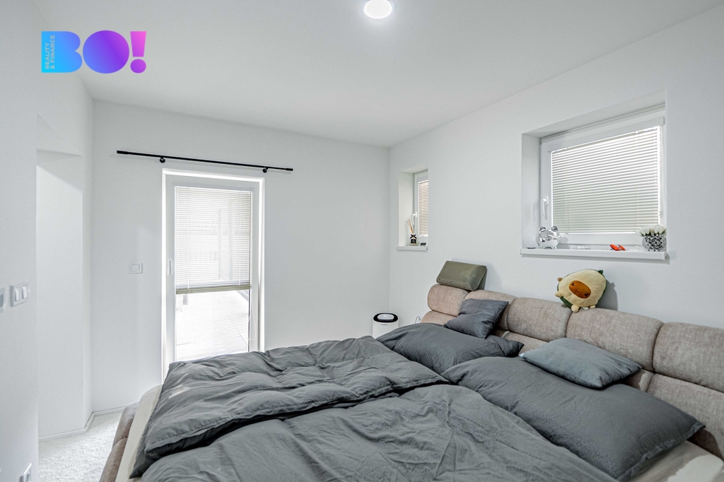 BO! Nabízíme k prodej moderní byt 3+kk s terasou 20 m² a přímým vstupem na zahradu a nadstandardním zázemím.