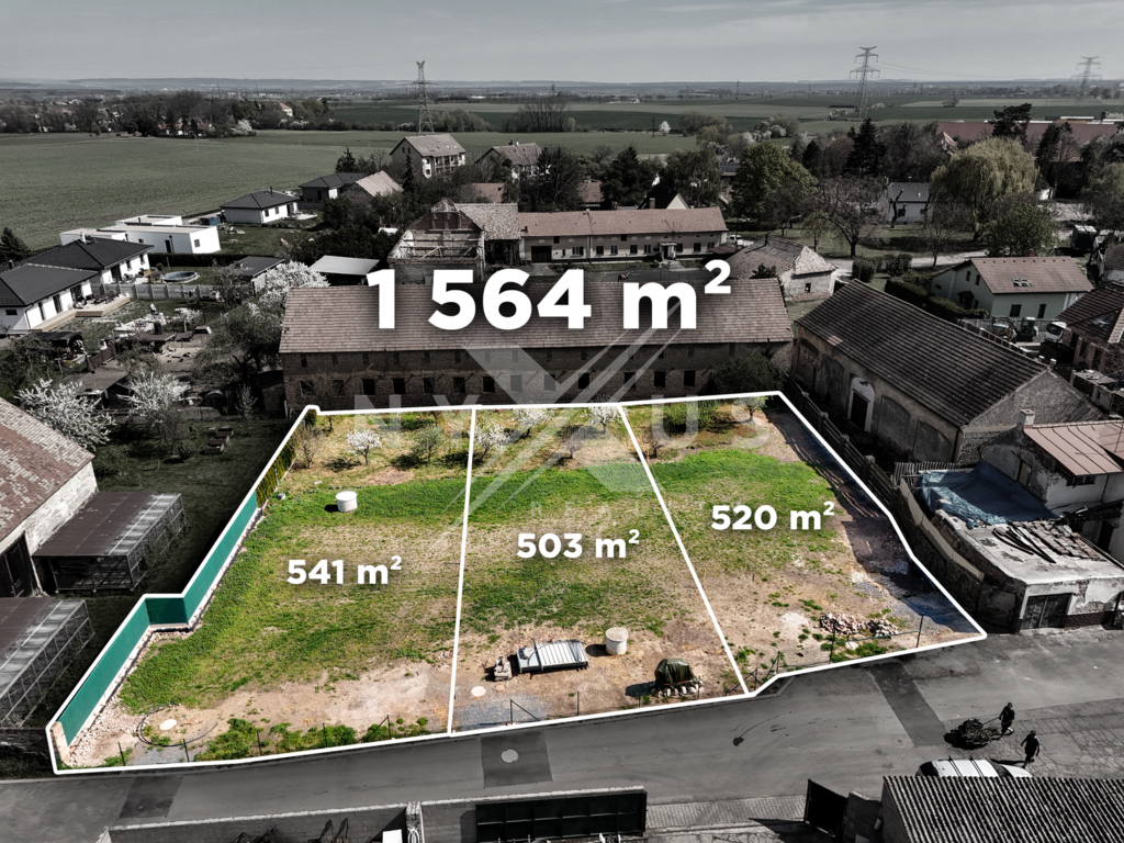 K dispozici jsou navíc ještě dva sousední pozemky o výměrách 503 m2 a 520 m2 — ideální například pro rodinu nebo investici.