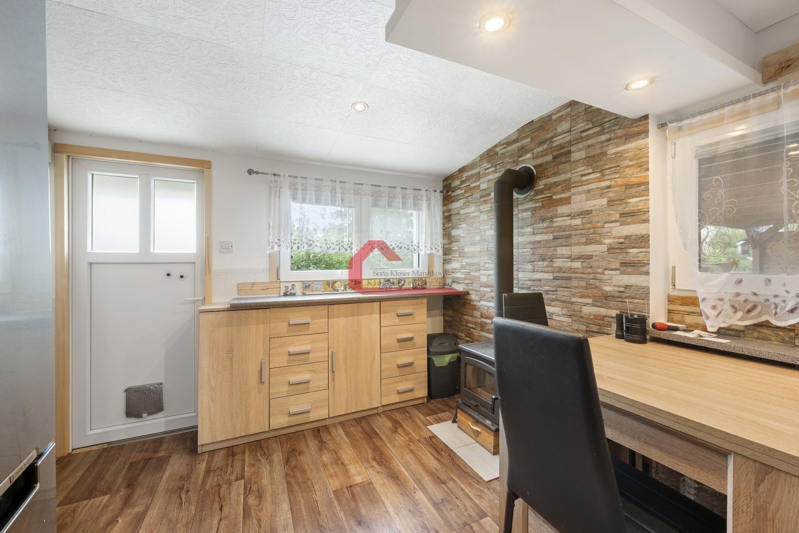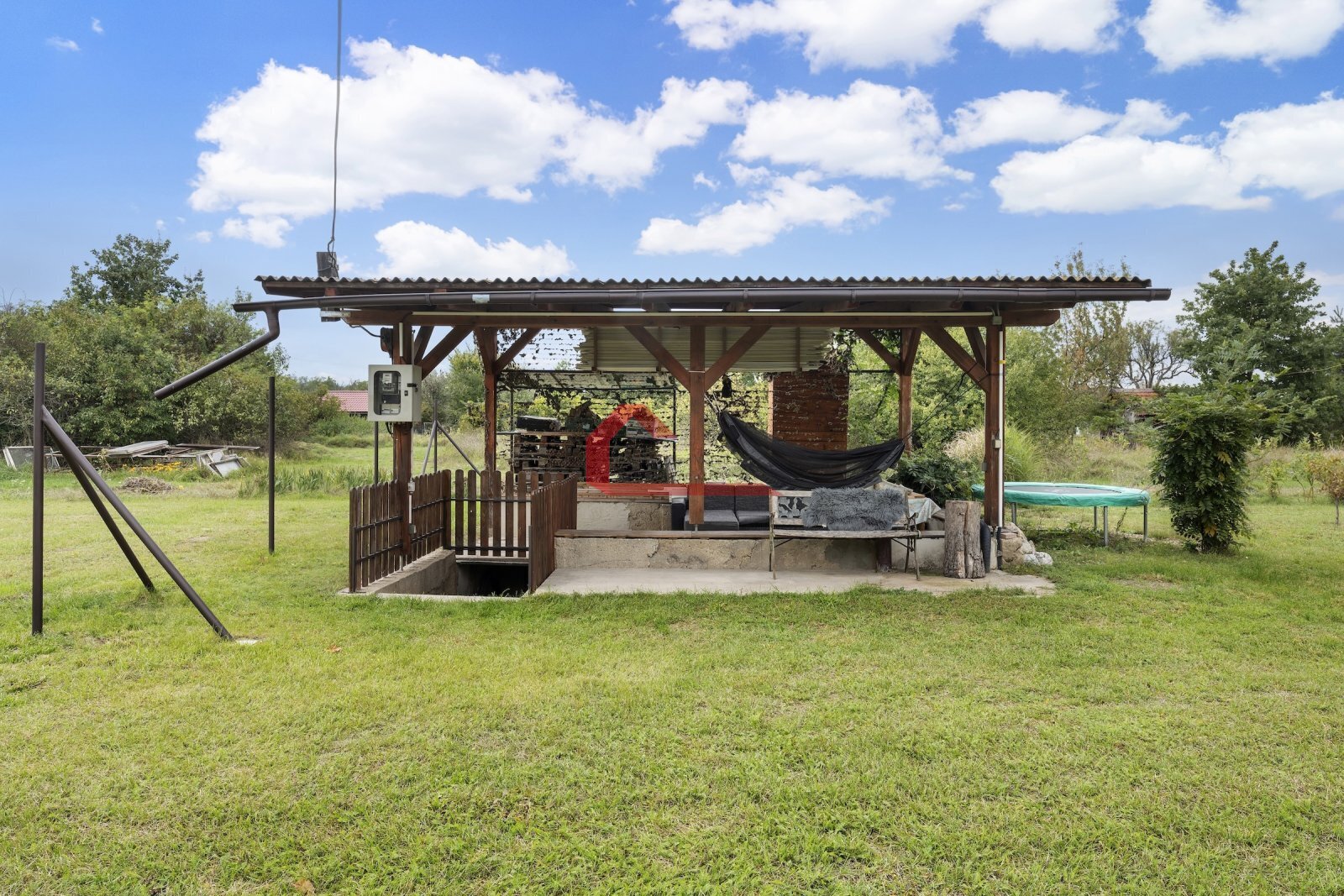 Na pozemku se nachází nejen mobilheim s plochou 37,8m2 a dispozici 3+1, ale i dva zastřešené altány o plochách 13,5m2 a 12,2m2 , dále sklep o ploše 10,6m2 , vrtaná studna a jímka.
