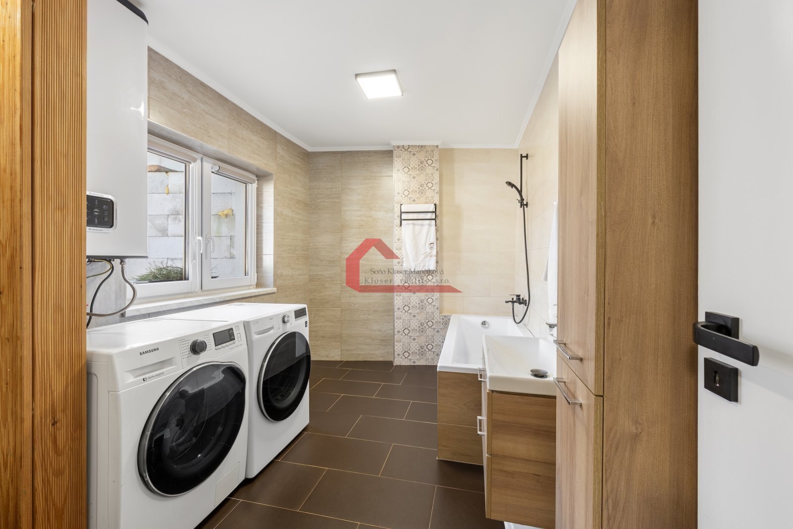 *novou koupelnu s WC, bojlerem a místem pro pračku a sušičku