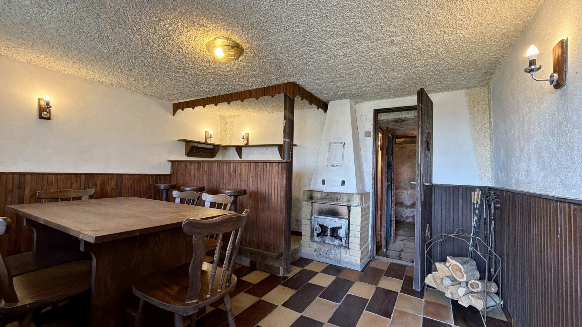 • Přízemí: Společenská místnost s krbem ideální pro rodinné oslavy, 3 samostatné sklepní prostory a místnost se suchým WC a umyvadlem.