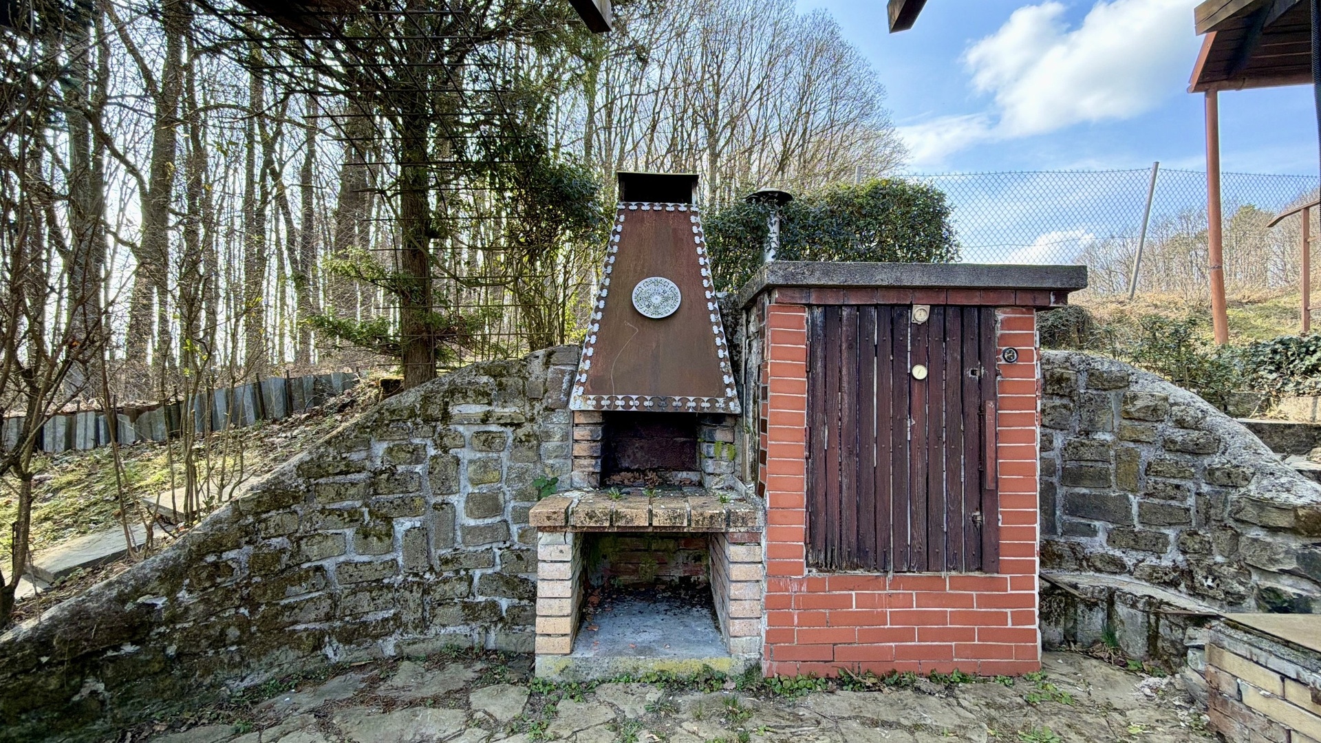 Vedle chaty se nachází venkovní posezení s pergolou, venkovním krbem a prostornou udírnou – perfektní zázemí pro letní grilování s přáteli v naprostém soukromí.