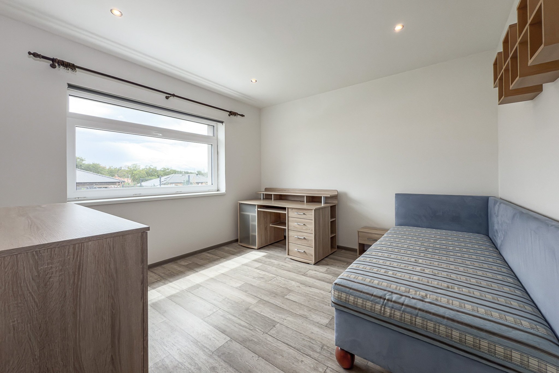 K domu náleží také vyhrazená část zahrady. Parkování je zajištěno jedním místem přímo před domem, další možnost parkování je na přilehlé ulici. Garáž není součástí pronájmu.