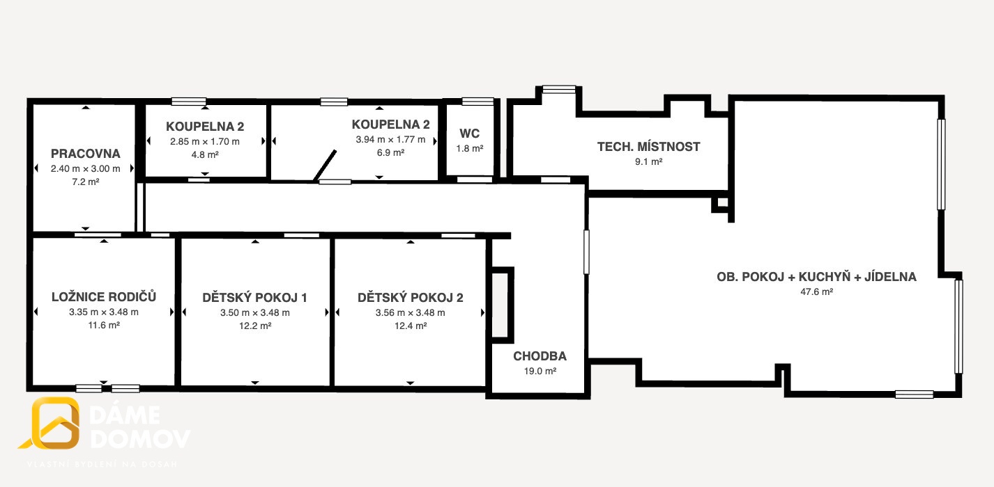 Dům je zděný, zateplený, okna s izolačními 3-skly, venkovní žaluzie, podlahové vytápění, klimatizace, prostorná kuchyňská linka na míru s vestavěnými spotřebiči a barovým pultem.